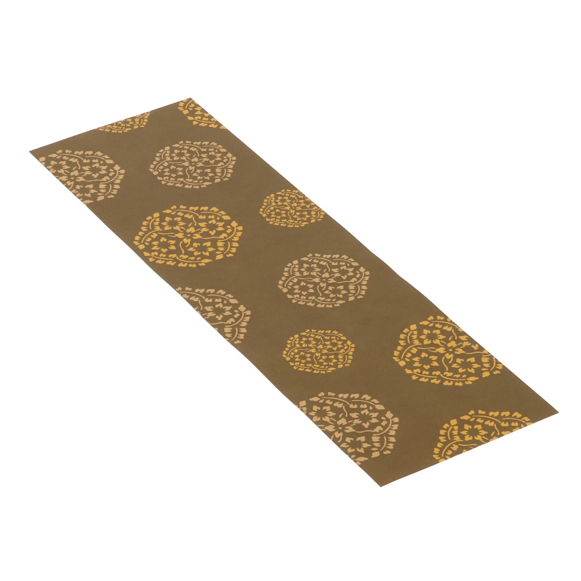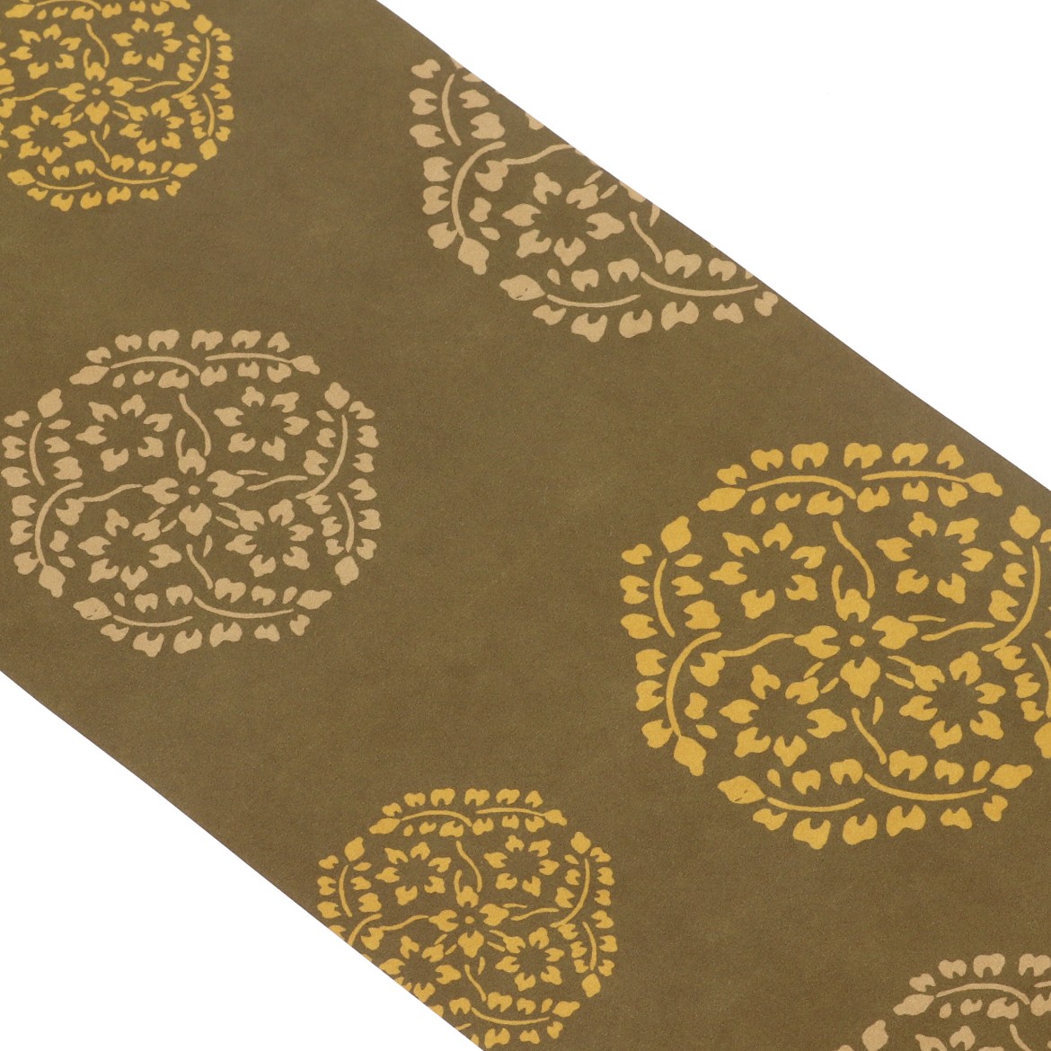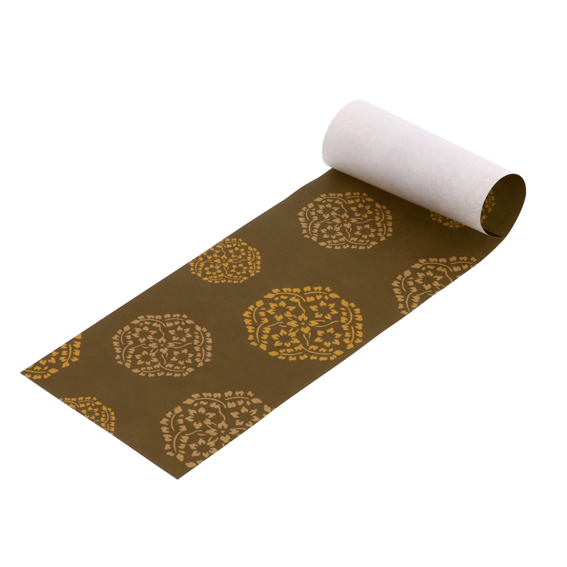 複数の花や草を円形に散りばめ、丸い紋様のように仕上げた花模様。和らしさがありつつもどこか異国の雰囲気を感じられるデザインなのでいつもと違うパッケージに。秋らしいカラーで揃えましたが、綺麗な花模様なのでシーズン問わずお使いいただけます。