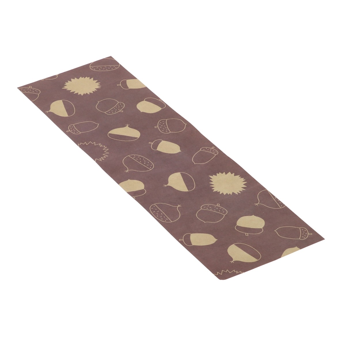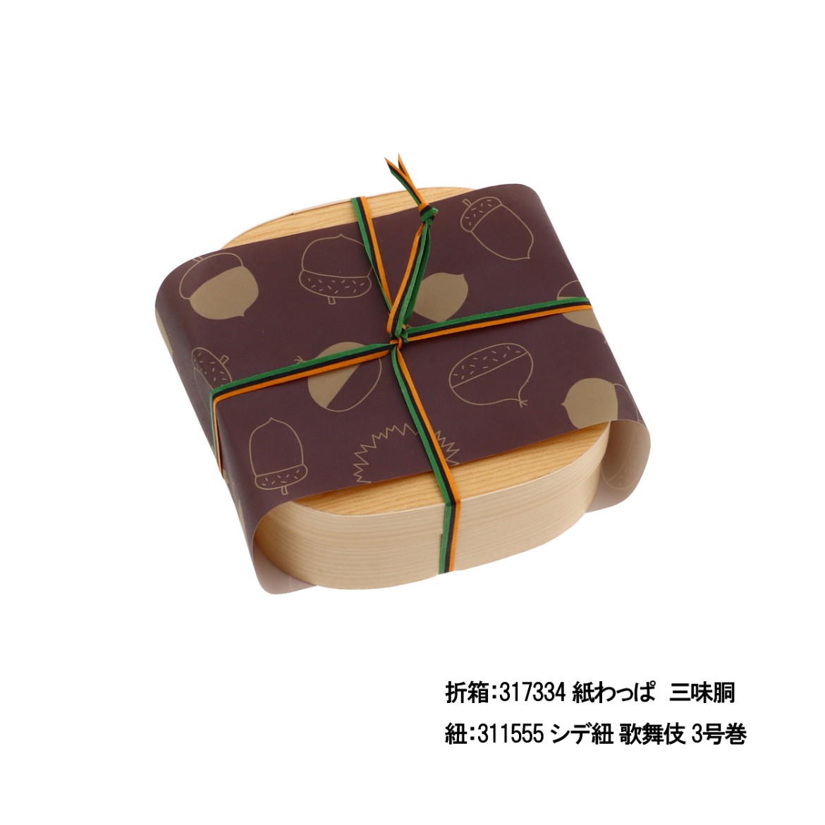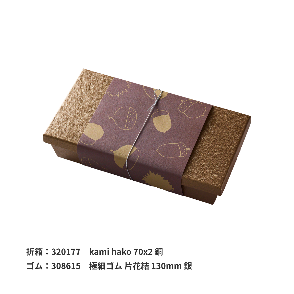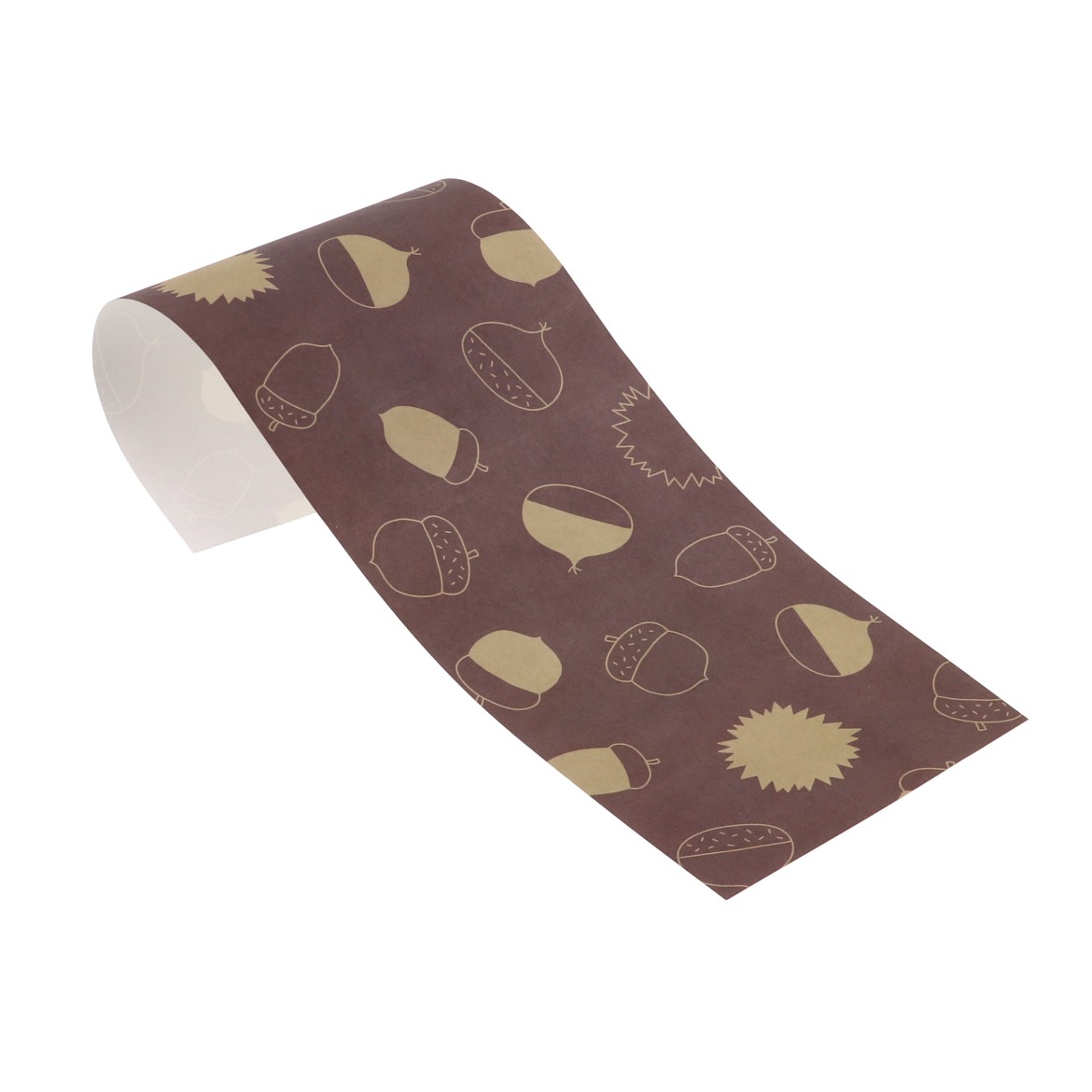 ころん、と転がる秋の木の実たちがあしらわれた可愛らしいデザインの掛紙。模様が背景になじむので、まるで栗拾いをしているよう。