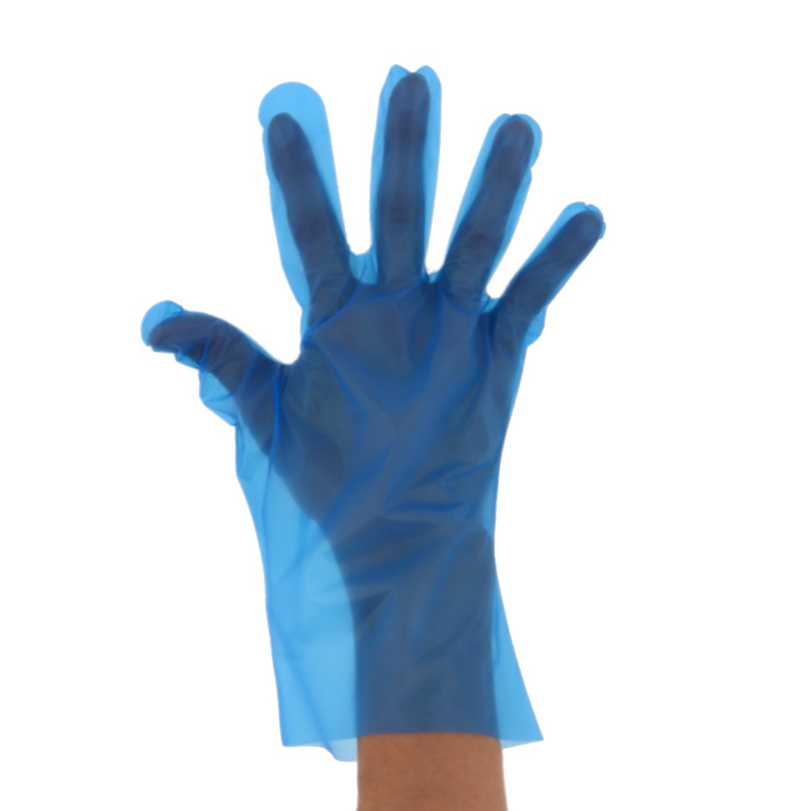 ポリ手袋外側表面にエンボス(凹凸)加工が施された、青色のポリ手袋です。