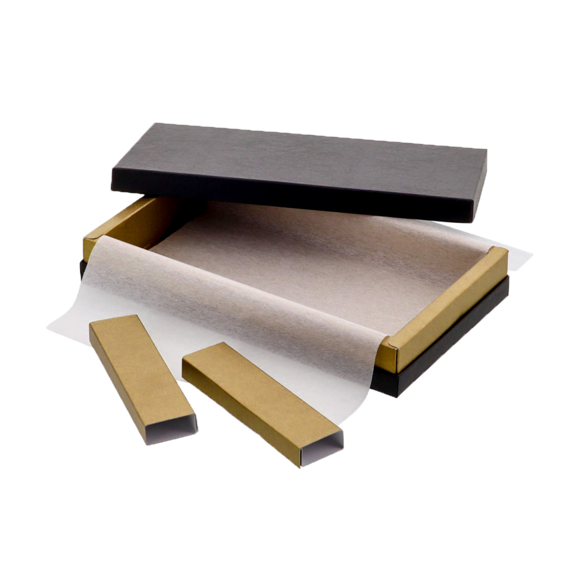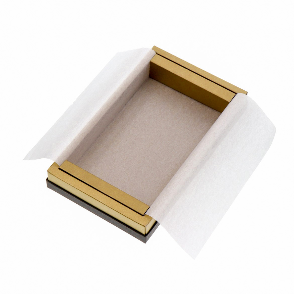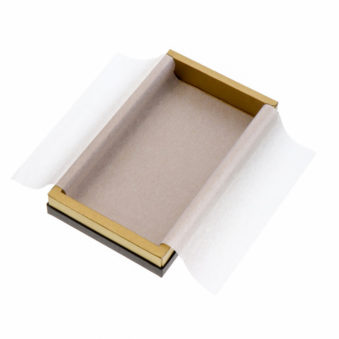 からすみの厚さに合わせて作られた箱なので、深さが無く沈み込むことがありません。また、付属のレーヨン紙に包めば上品な見た目にも仕上がります。