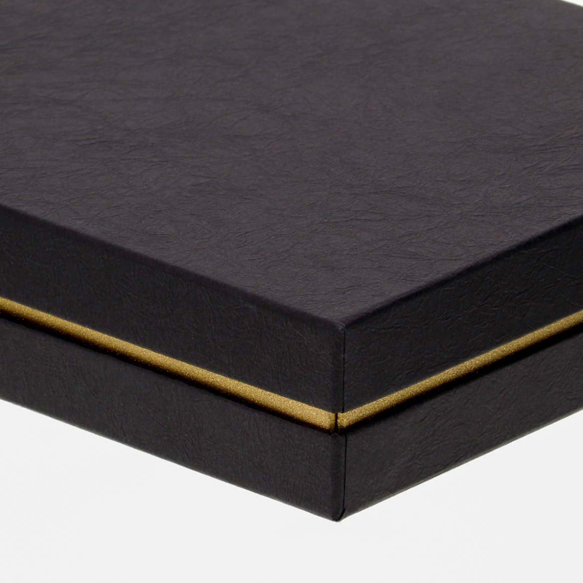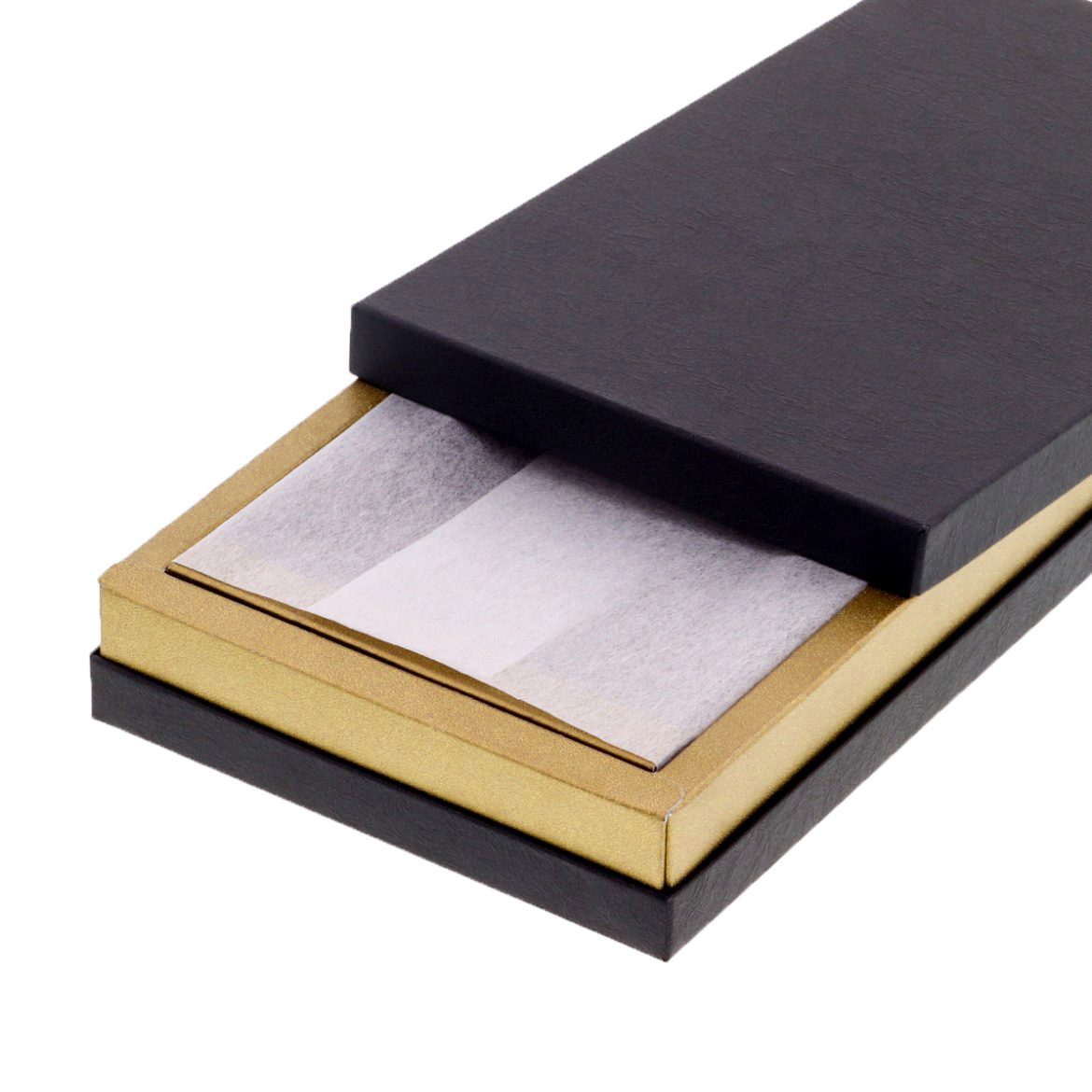 本体は黒の揉み和紙で見た目も手触りも上品な印象になり、中の印籠部はマットなゴールドを使用し派手過ぎないデザインに仕上げました。