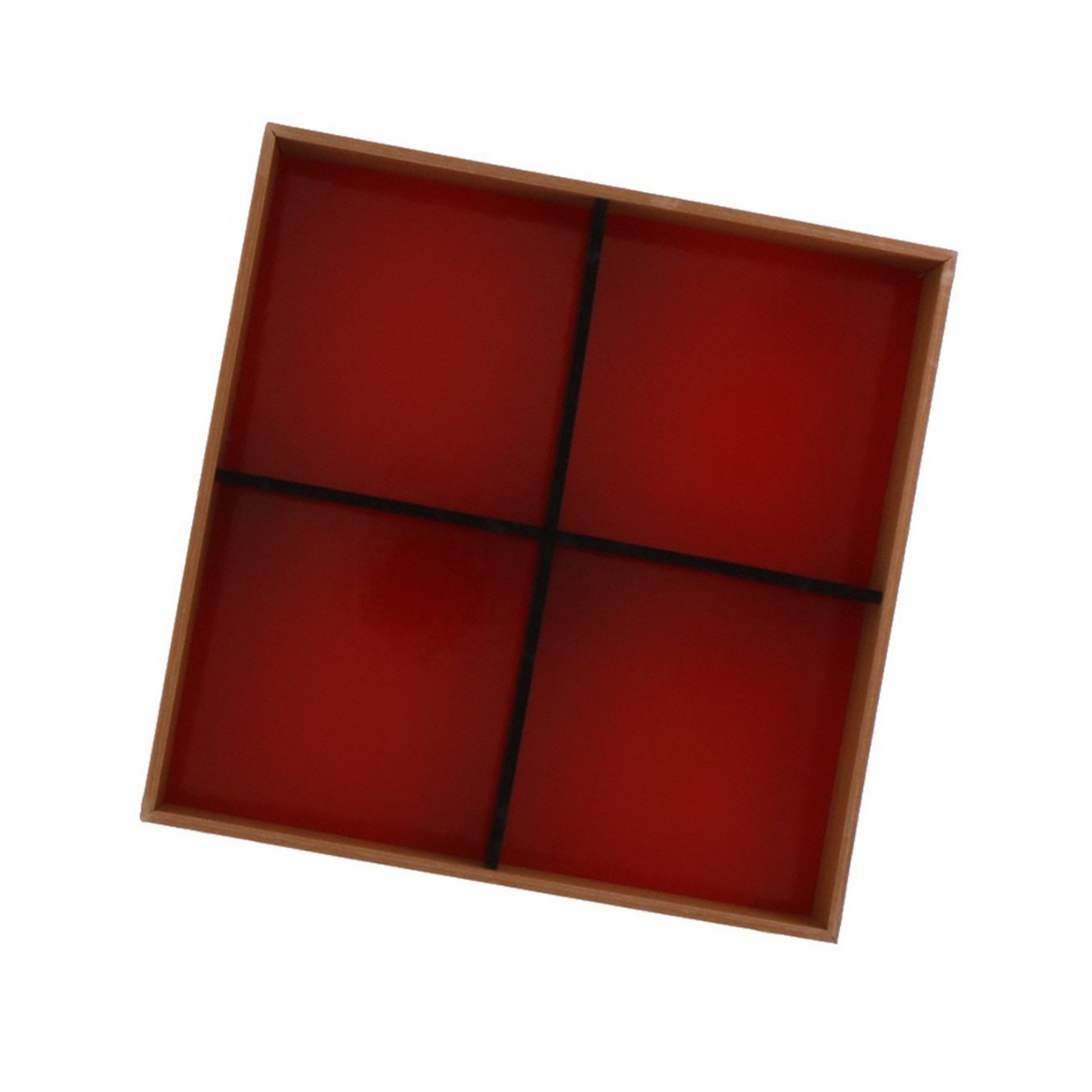 四分する十字の仕切りが付いた、定番の大きさの松花堂弁当に最適です。かぶせ蓋よりも価格を抑えたい方におすすめ。小鉢70がぴったりと入りますので、汁物や汁もれしやすいおかずを入れる際には併せてご利用ください。