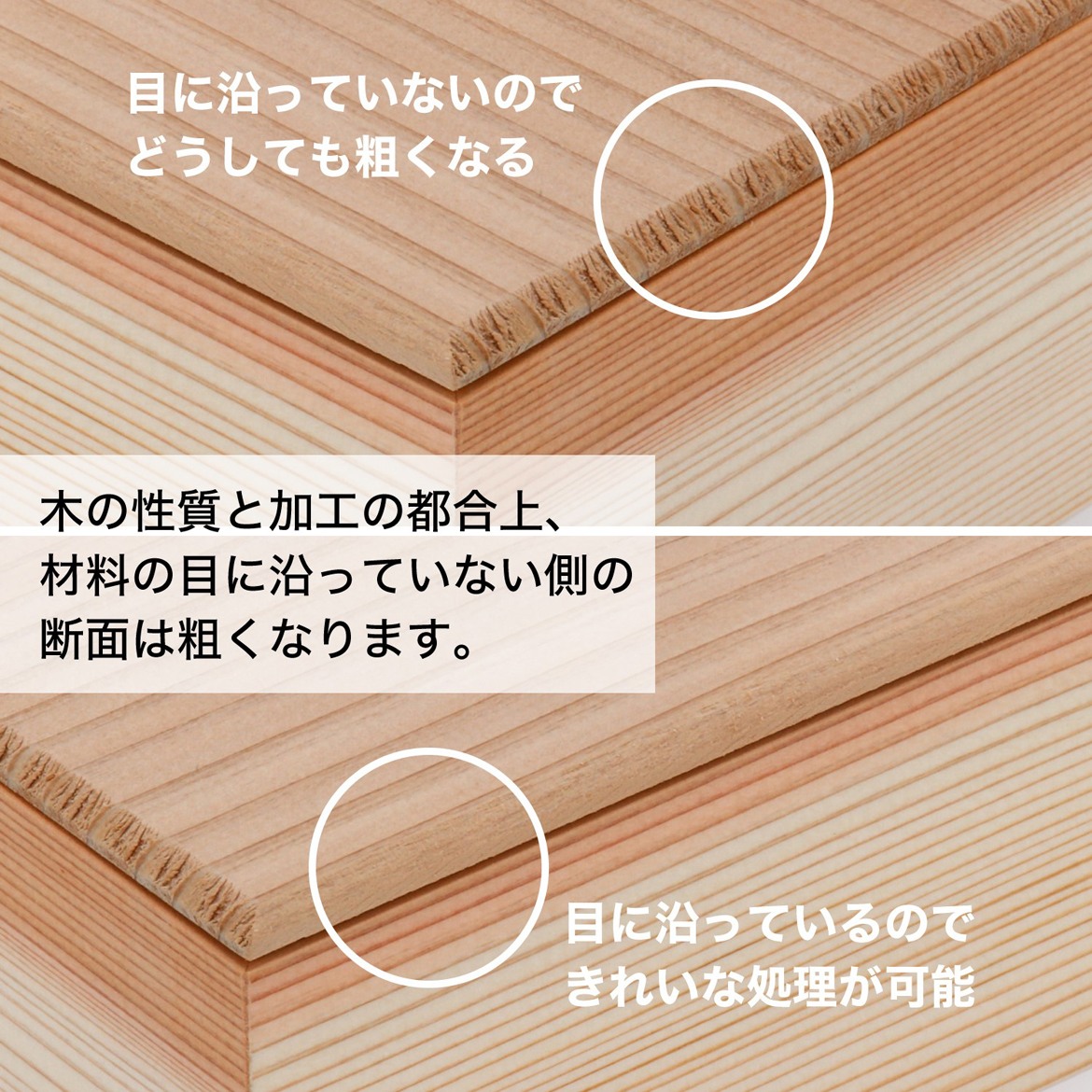 蓋のエッジが丸く削られているのが特徴的な杉の折箱です。
