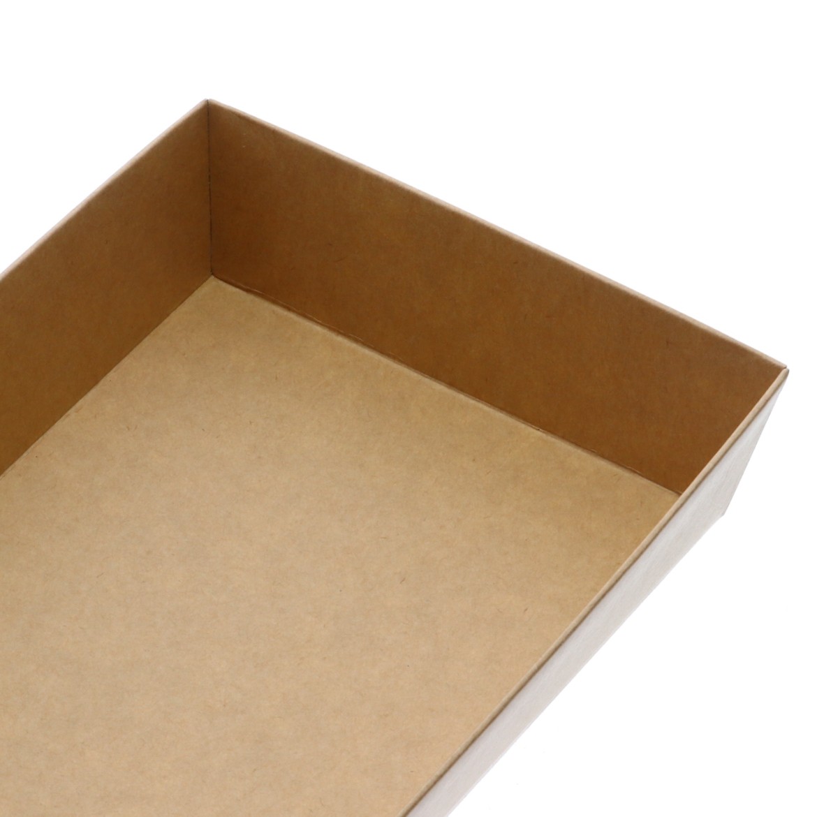 両面PE加工のため耐水性、耐油性に優れた電子レンジ対応商品です。サラダやサンドイッチなどのサイドメニューや軽食のボックス、テイクアウト容器としても最適です。