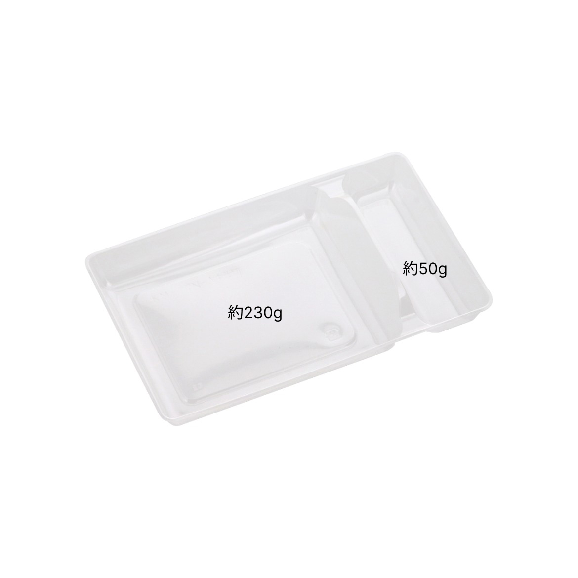 電子レンジ対応の耐油耐熱に優れた、KM-77専用の2つ仕切です。内容量はそれぞれ約50gと230g盛り込むことが出来ます。