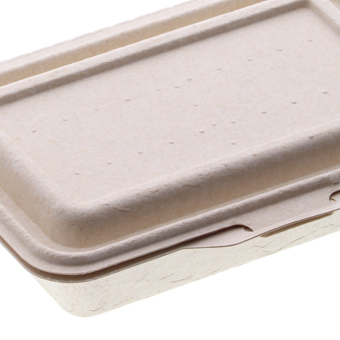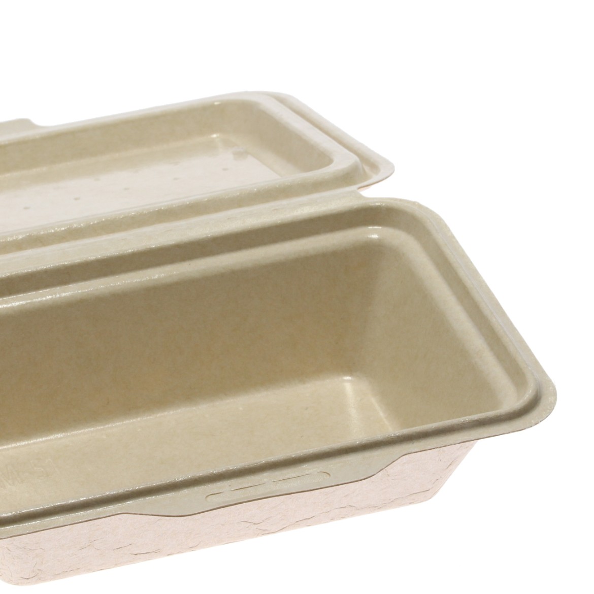 仕切りのない電子レンジ対応の蓋一体型パルプモールド容器です。