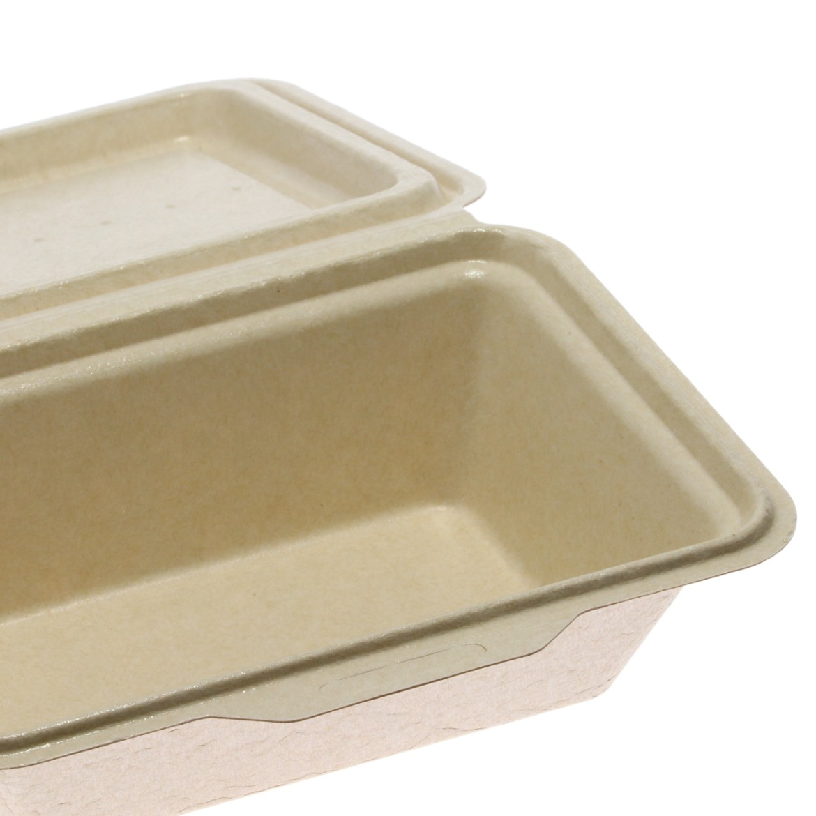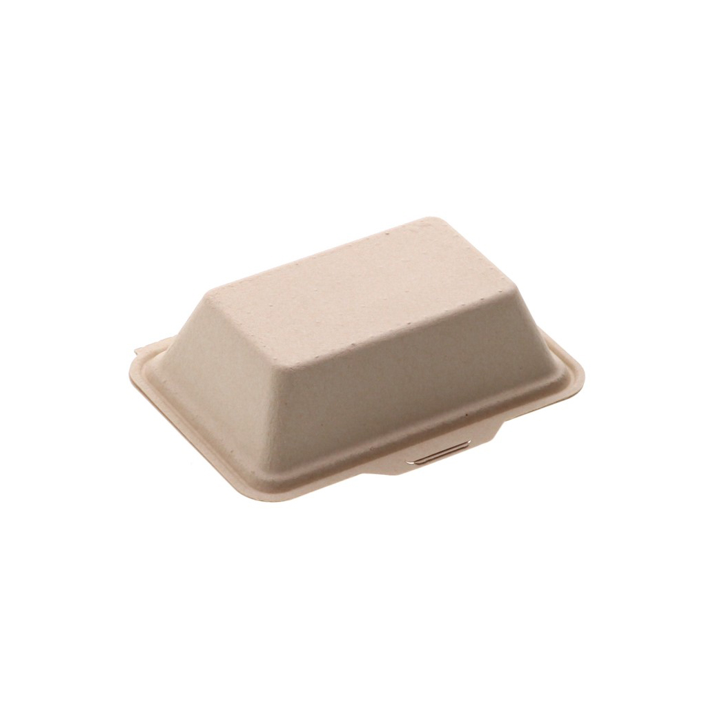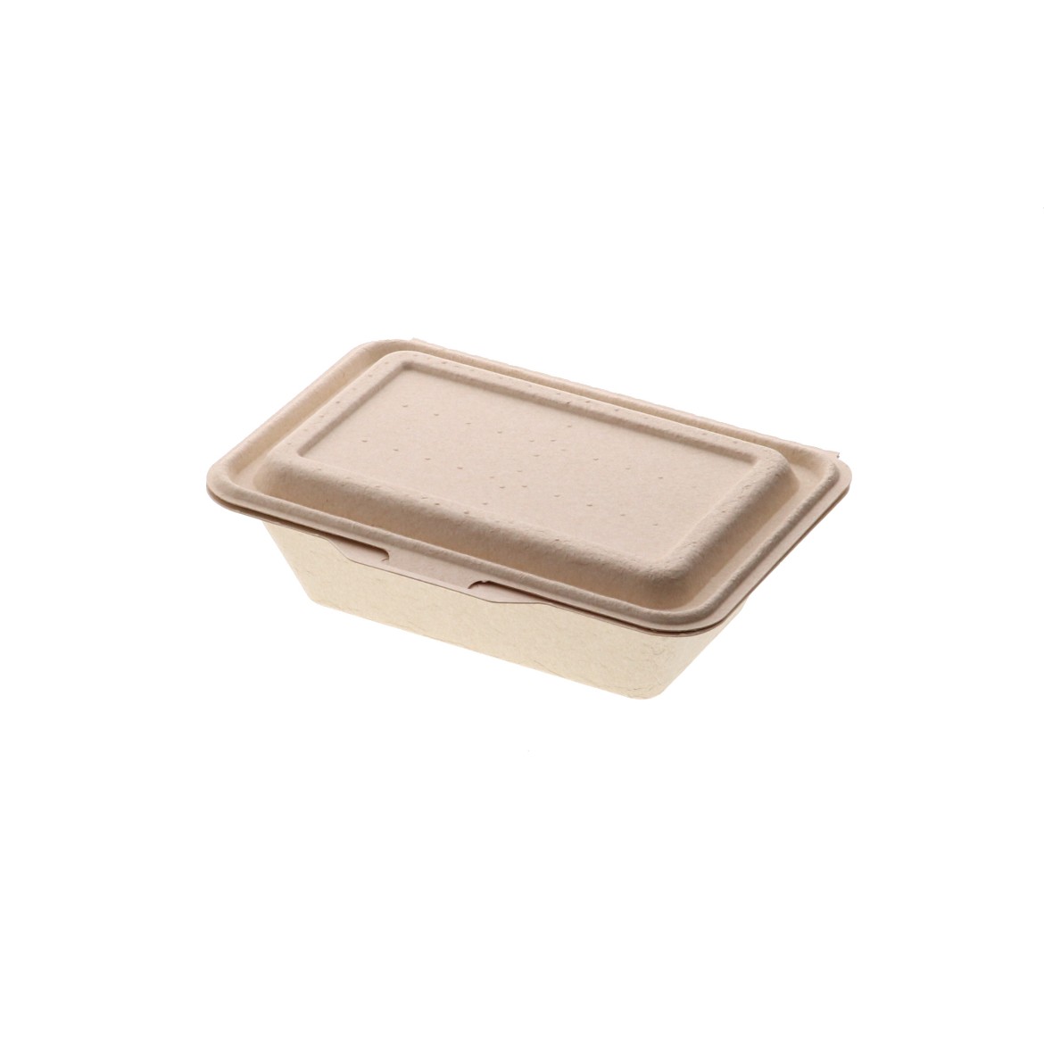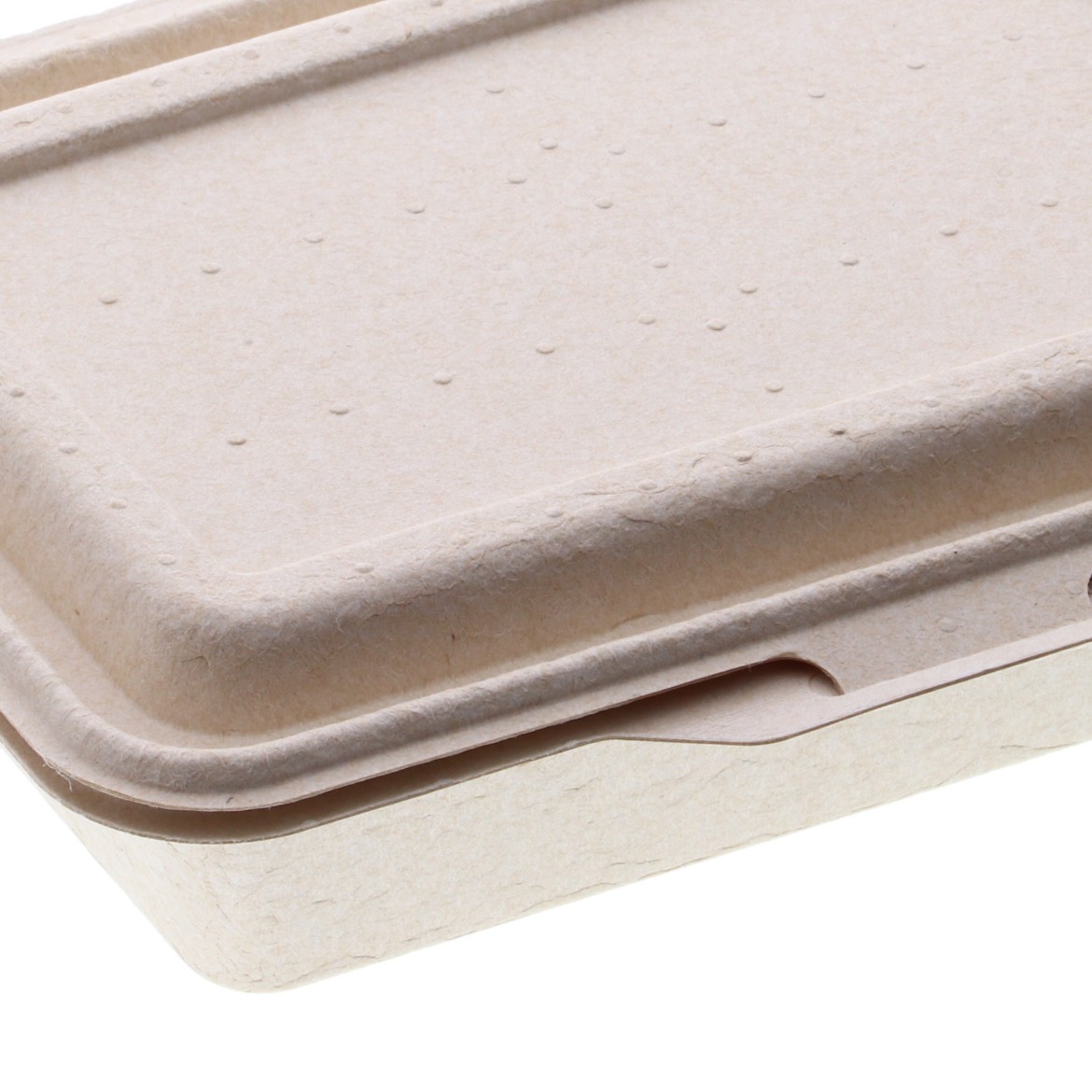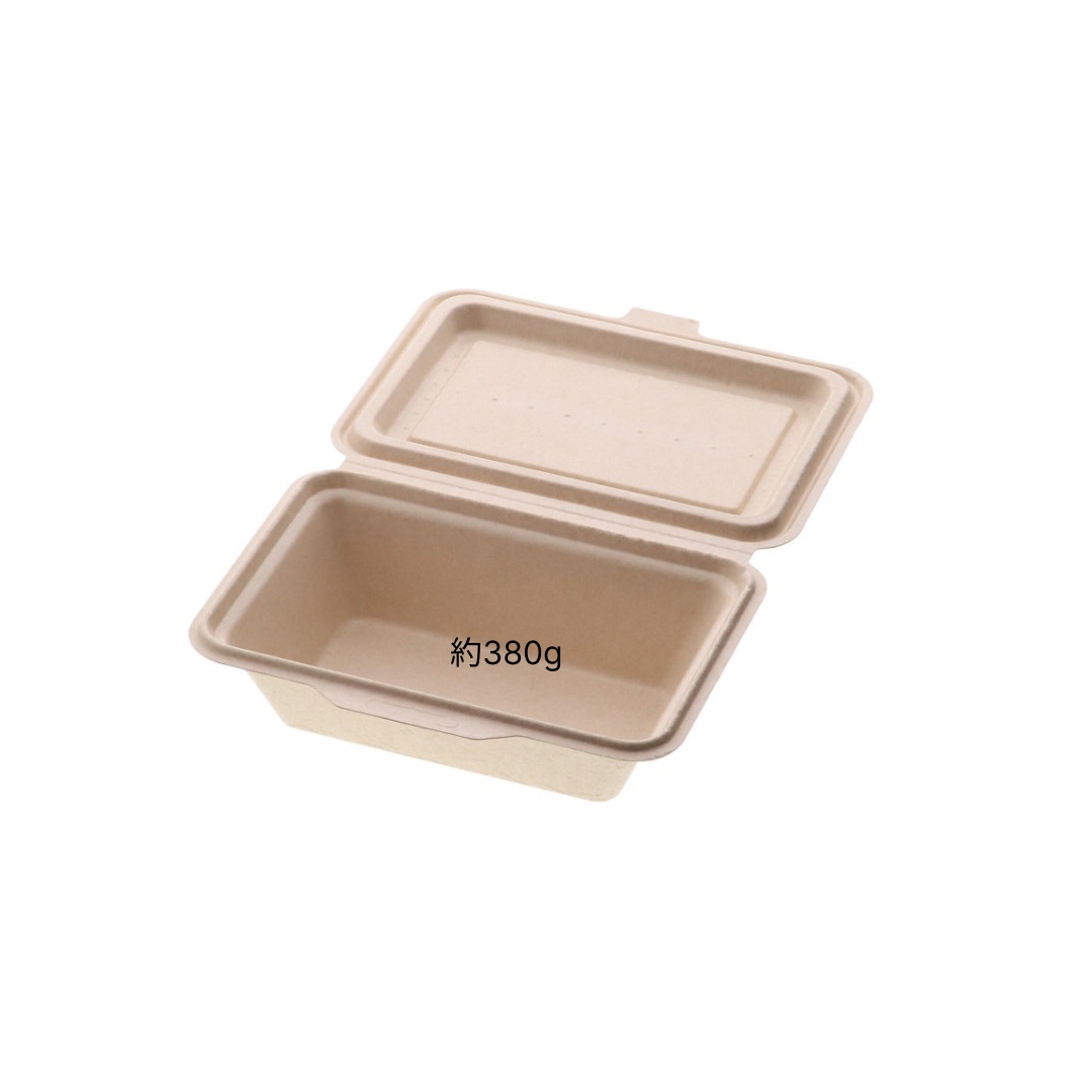仕切りのない電子レンジ対応の蓋一体型パルプモールド容器です。