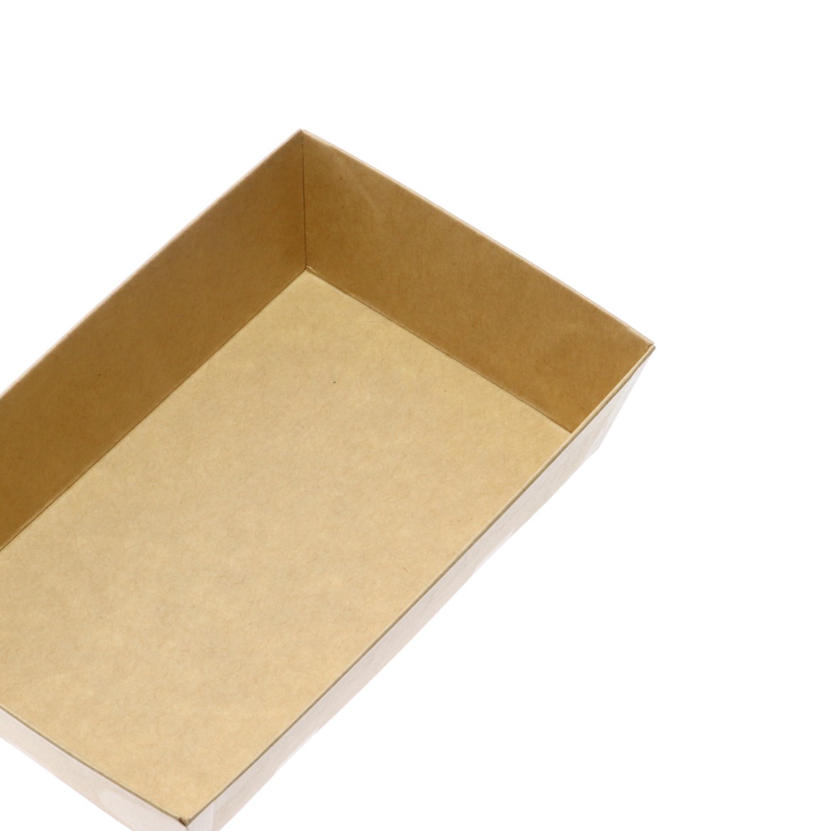 両面PE加工のため耐水性、耐油性に優れた電子レンジ対応商品です。サラダやサンドイッチなどのサイドメニューや軽食のボックス、テイクアウト容器としても最適です。
