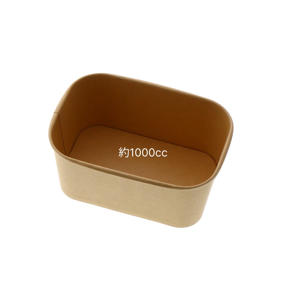 電子レンジ対応の長方形型の紙製容器です。別売の中皿を組み合わせて丼やお弁当としてもおすすめです。