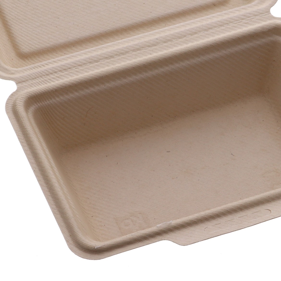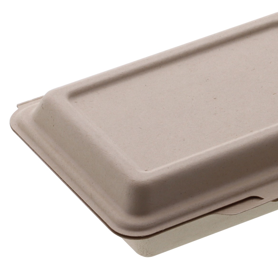 電子レンジ対応バガス(サトウキビ)の素材のモールド蓋一体型容器です。