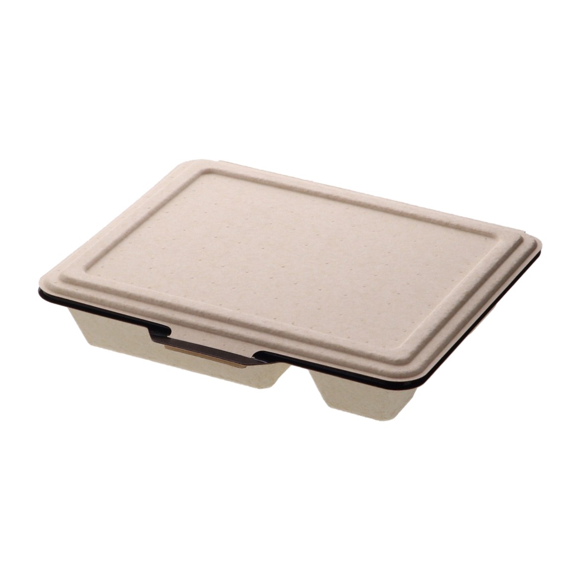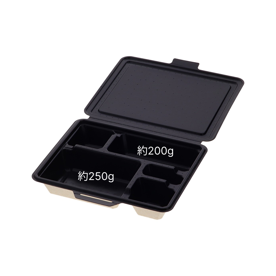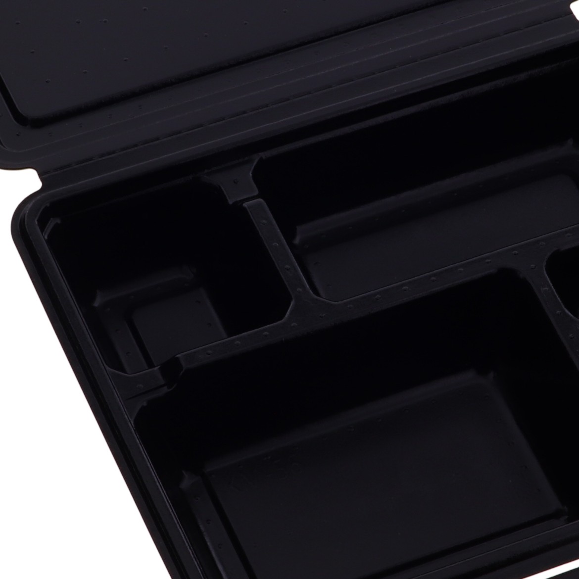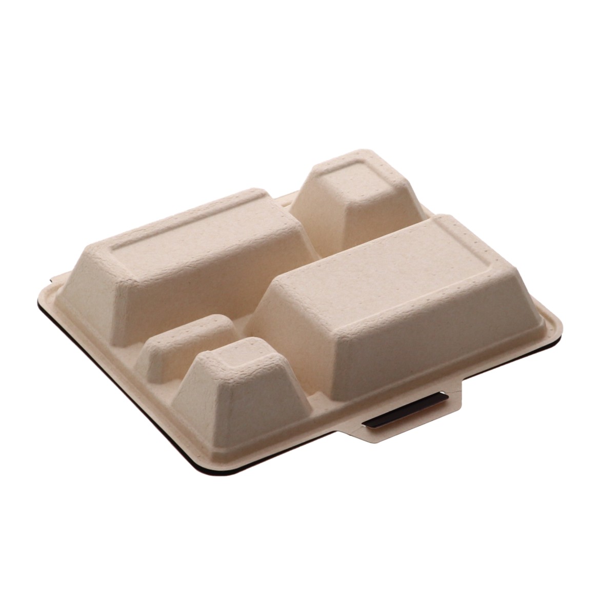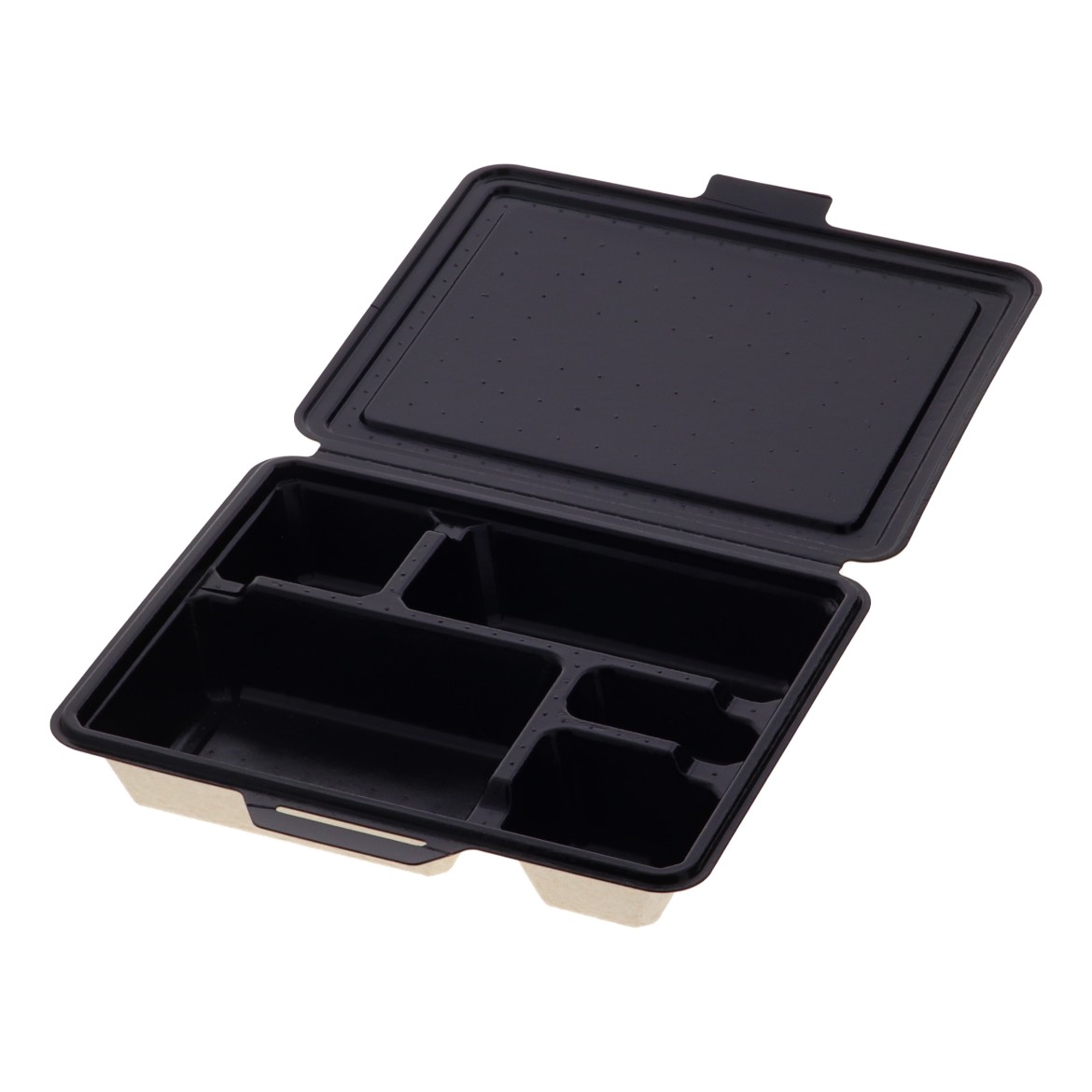 5つ仕切の電子レンジ対応の蓋一体型パルプモールド容器です。