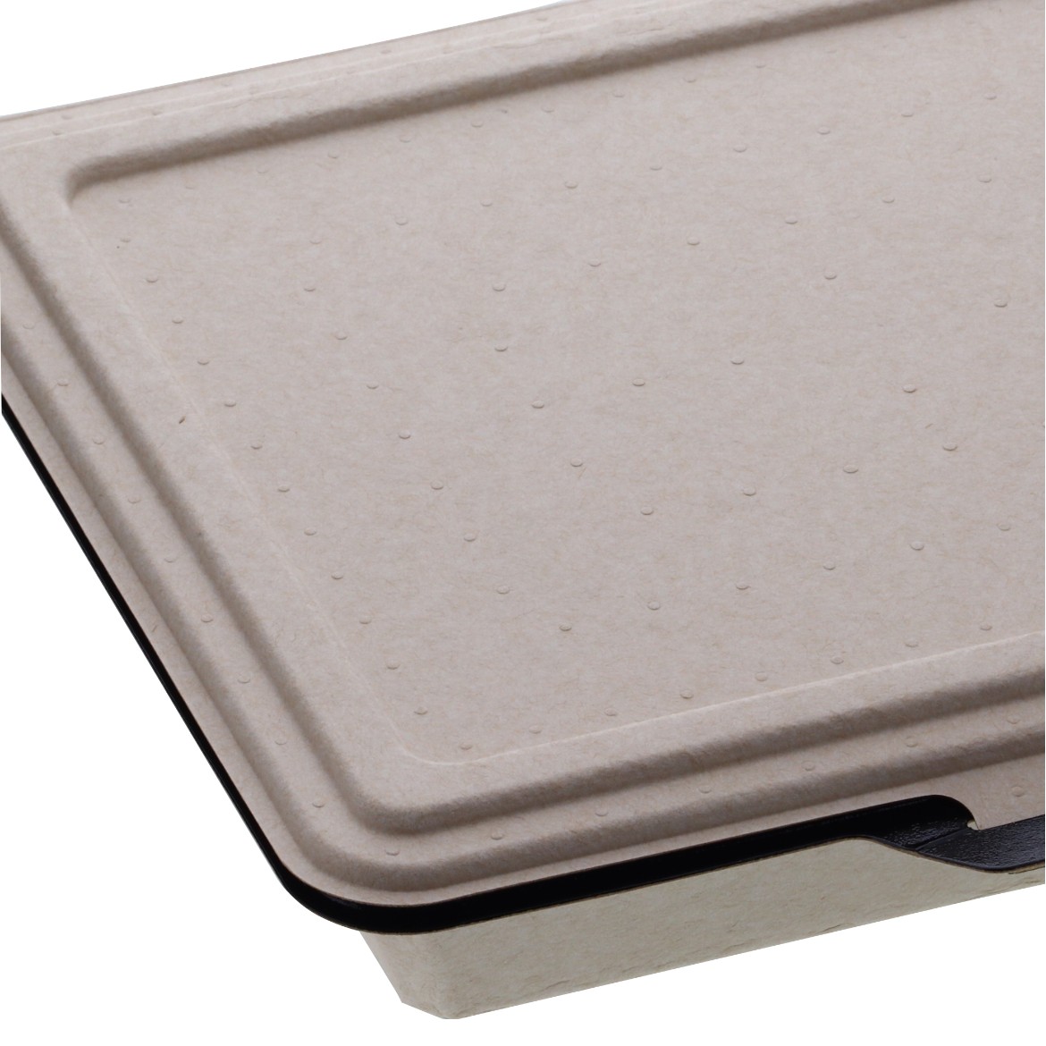 蓋の縁が内側に落ちているので汁もれしにくい設計となっております。本体と蓋の境目に切り取り線があり、切り離しができます。