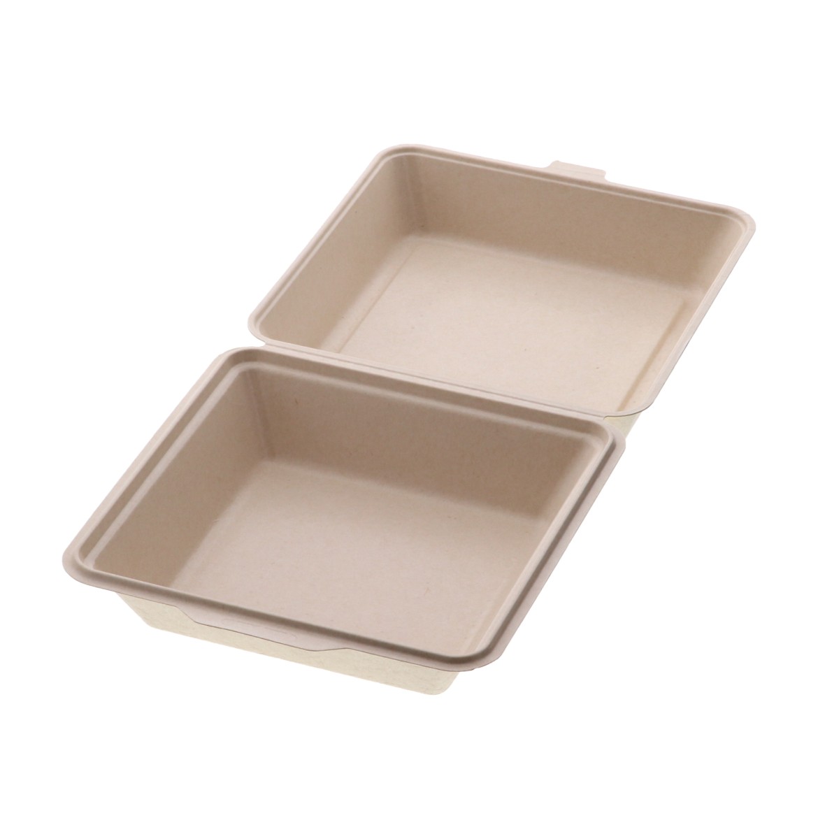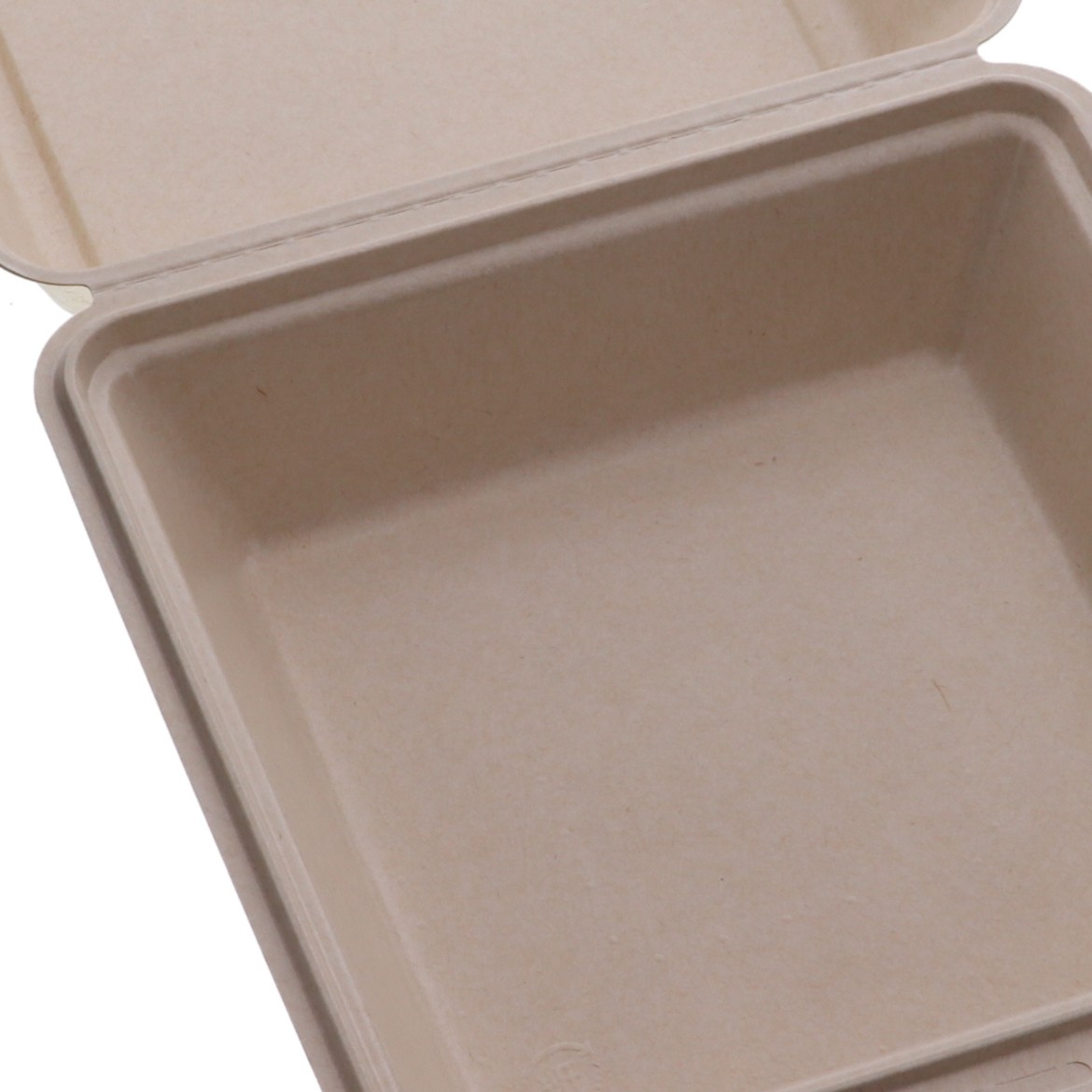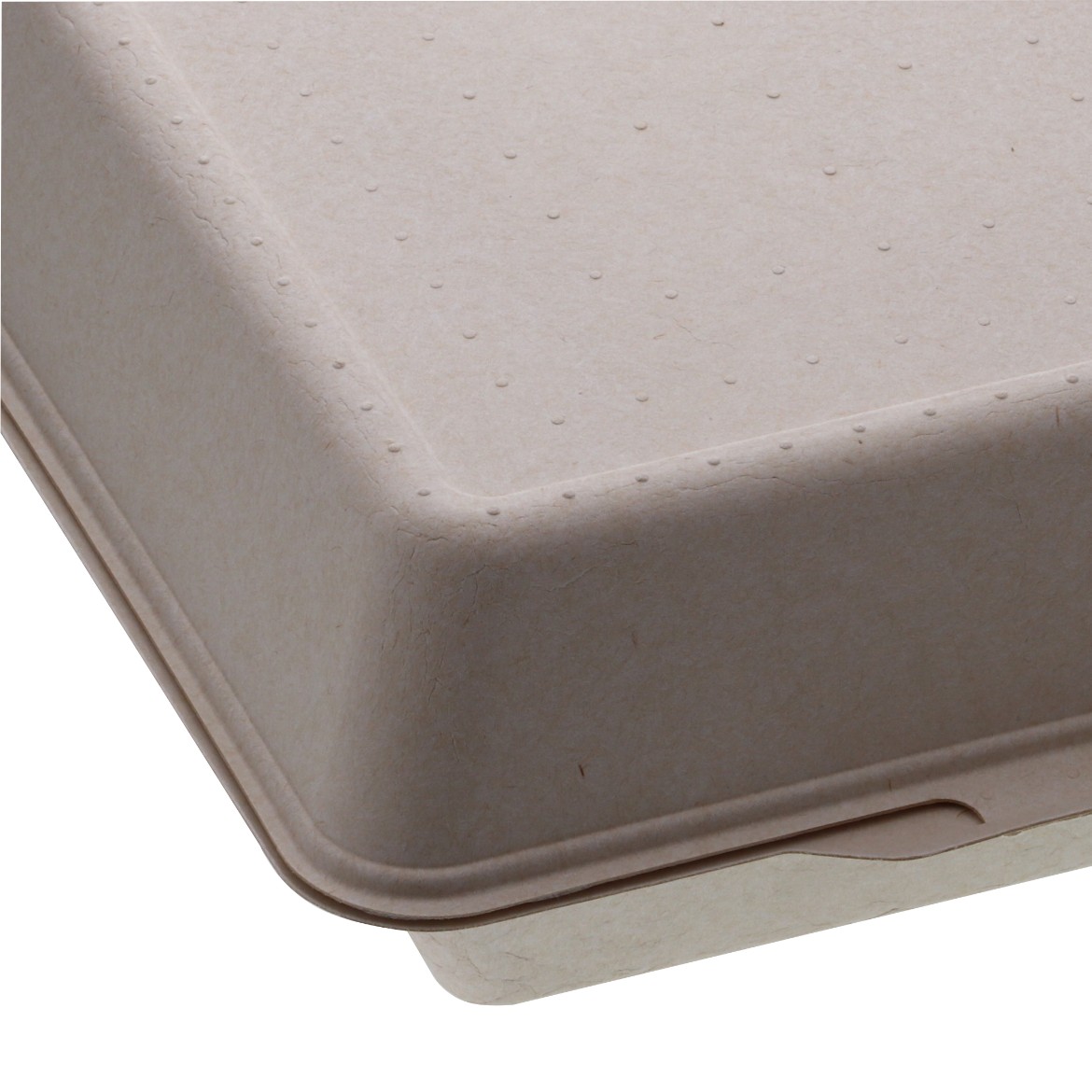 仕切りのない電子レンジ対応の蓋一体型パルプモールド容器です。