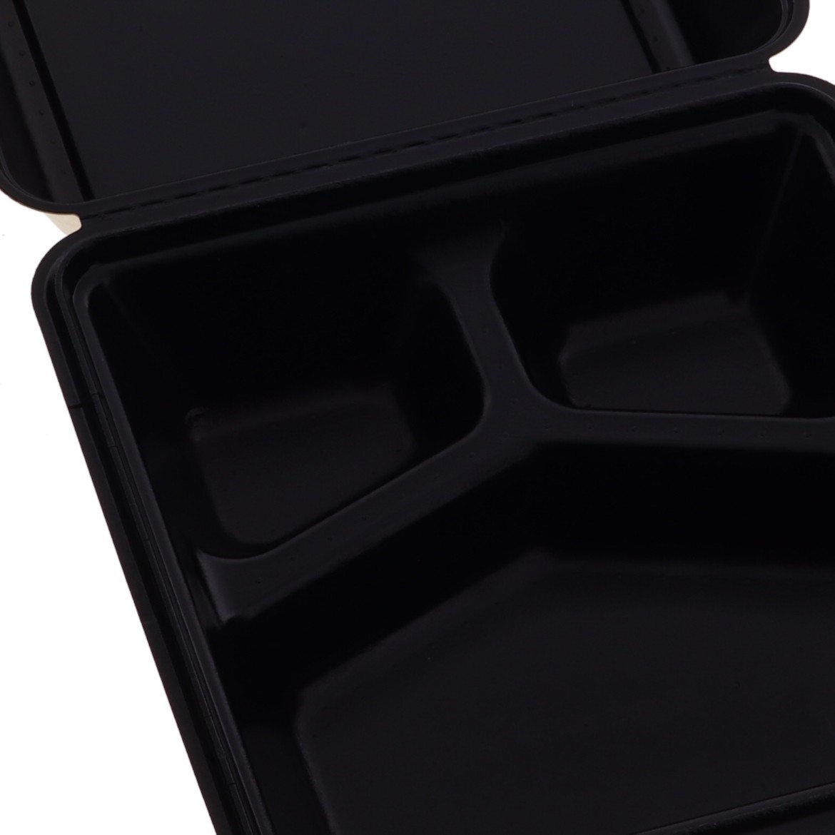 3つ仕切の電子レンジ対応の蓋一体型パルプモールド容器です。