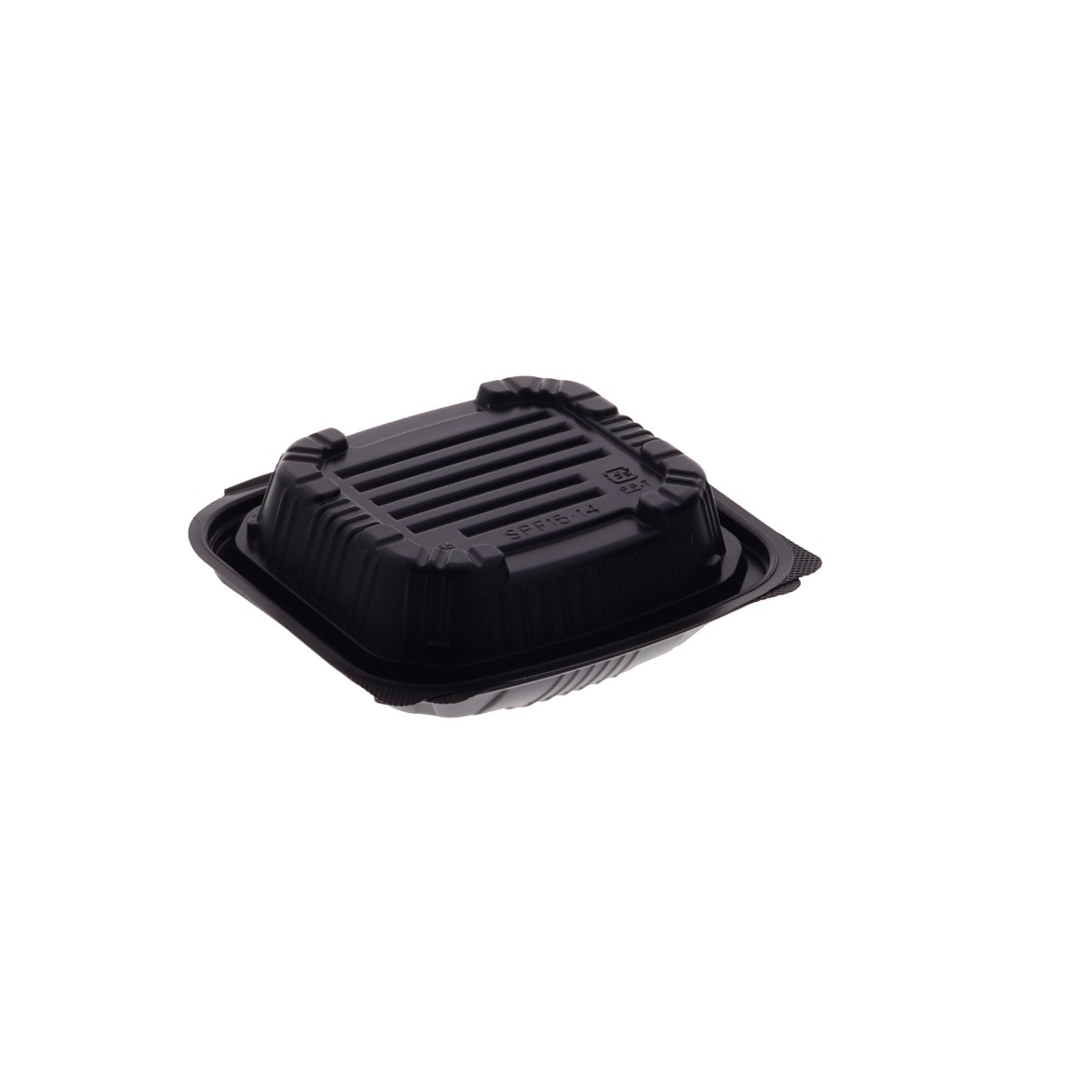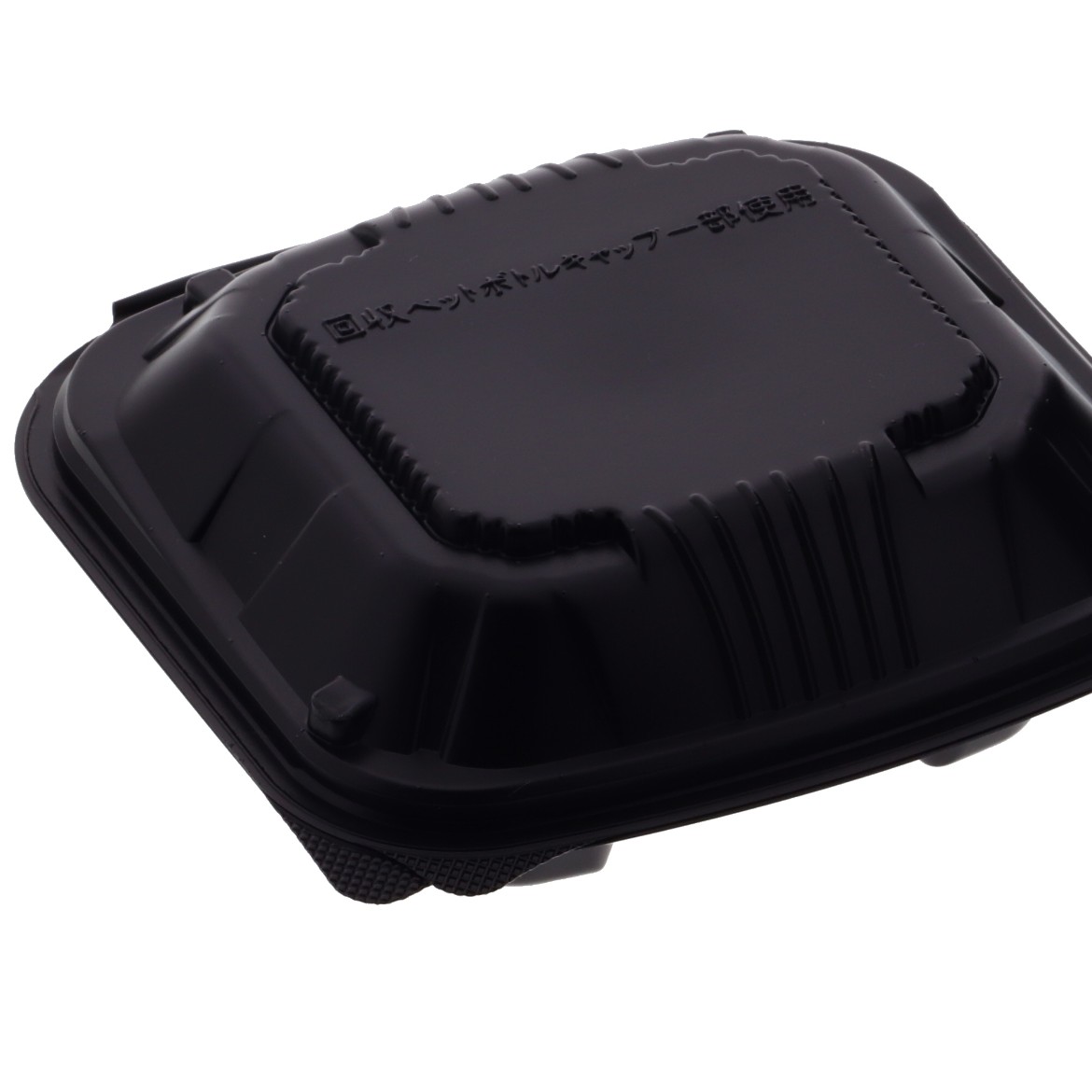 ペットボトルキャップを原料とした食品トレーを使用しています。環境に配慮した蓋一体型容器です。