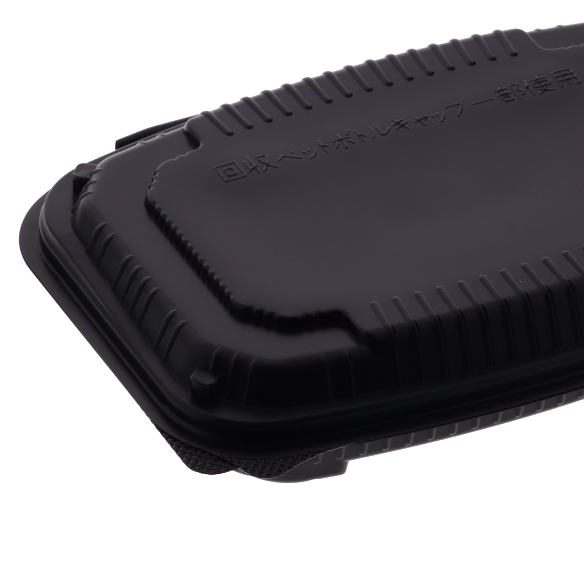 ペットボトルキャップを原料とした食品トレーを使用しています。環境に配慮した蓋一体型容器です。