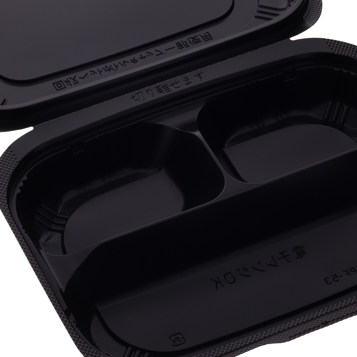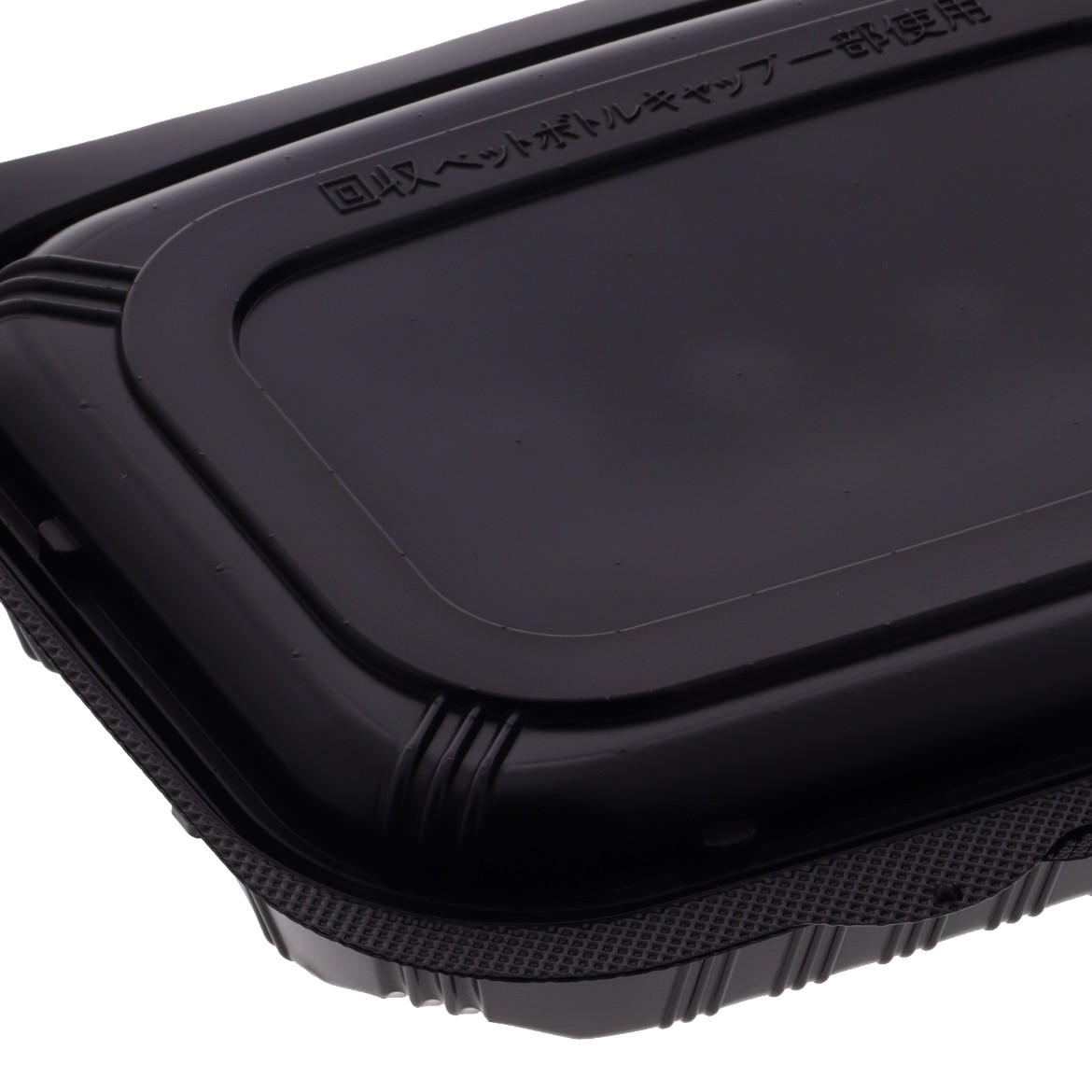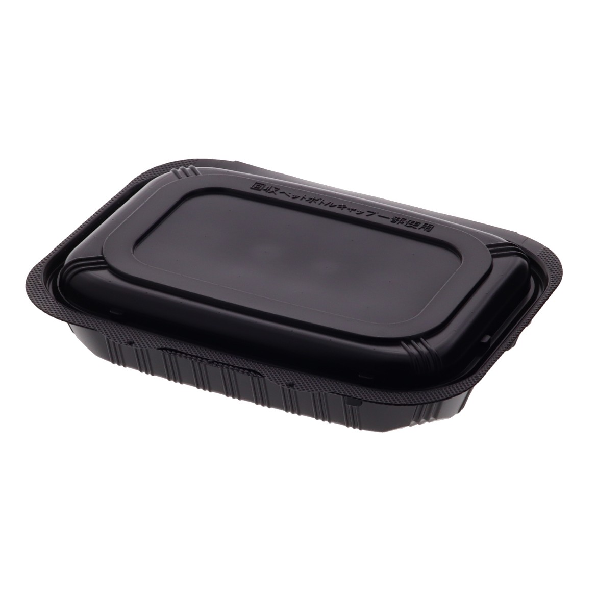ペットボトルキャップを原料とした食品トレーを使用しています。環境に配慮した蓋一体型容器です。