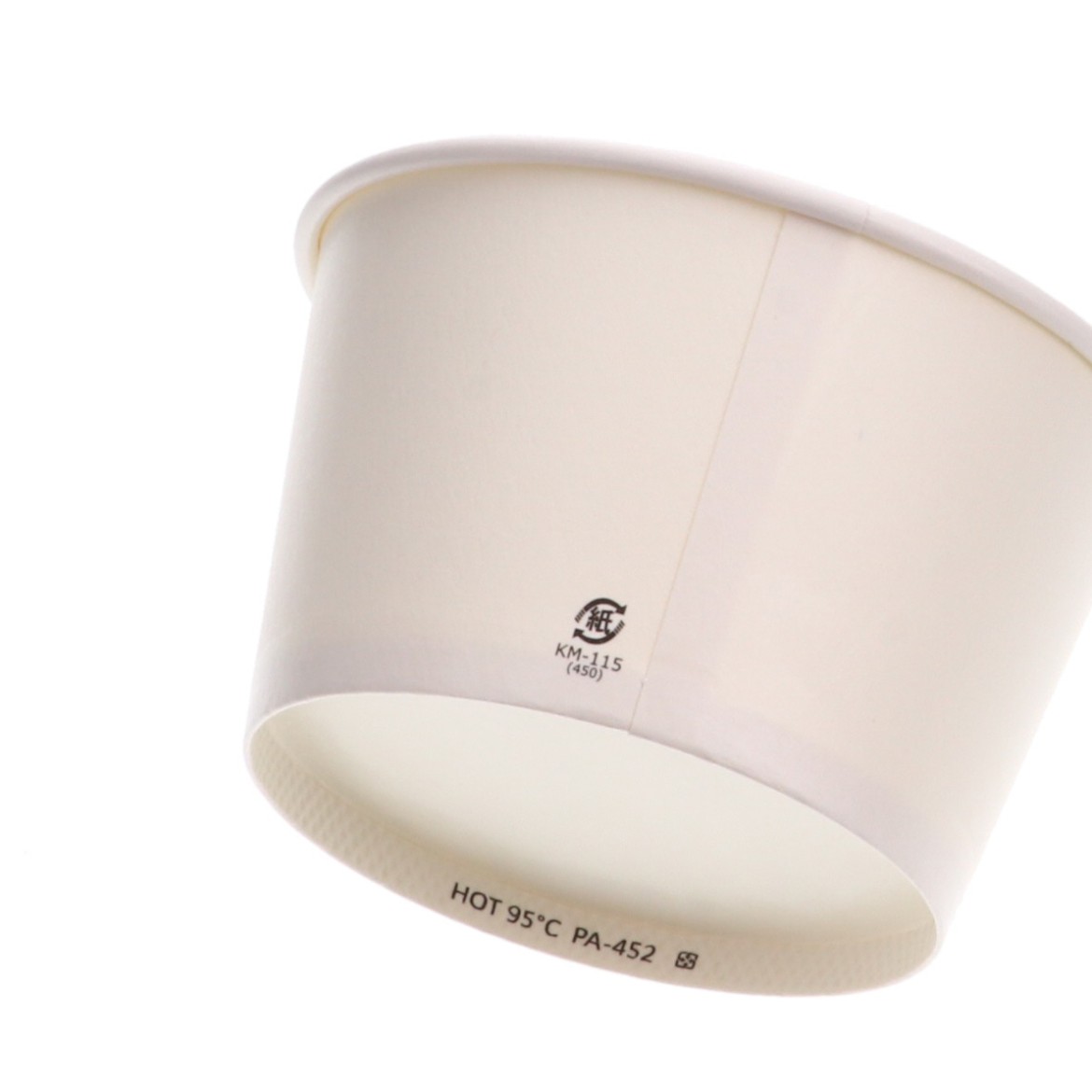 電子レンジ対応の紙カップです。汁漏れしにくい紙質でできており、スープやパスタ、丼などに最適な容器です。