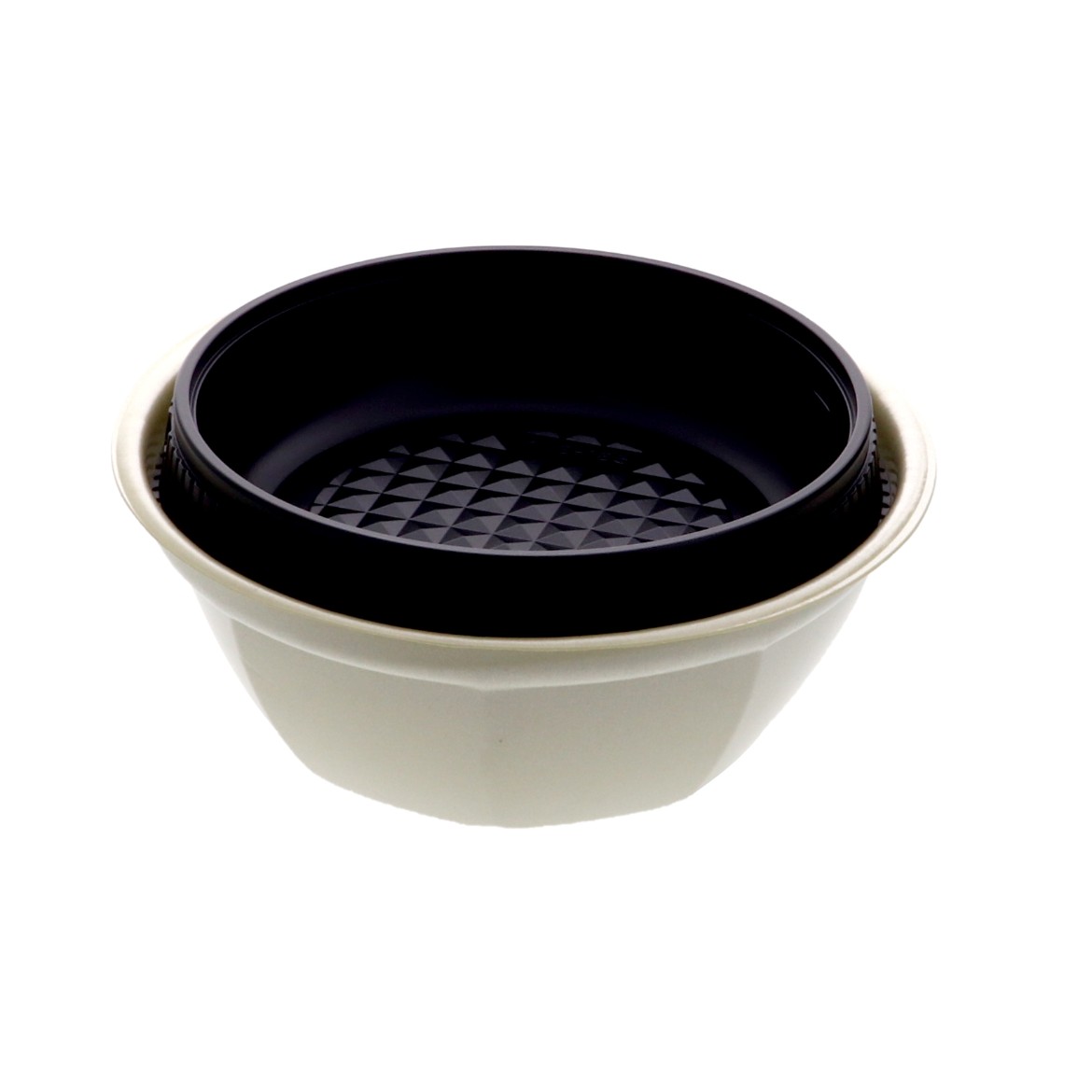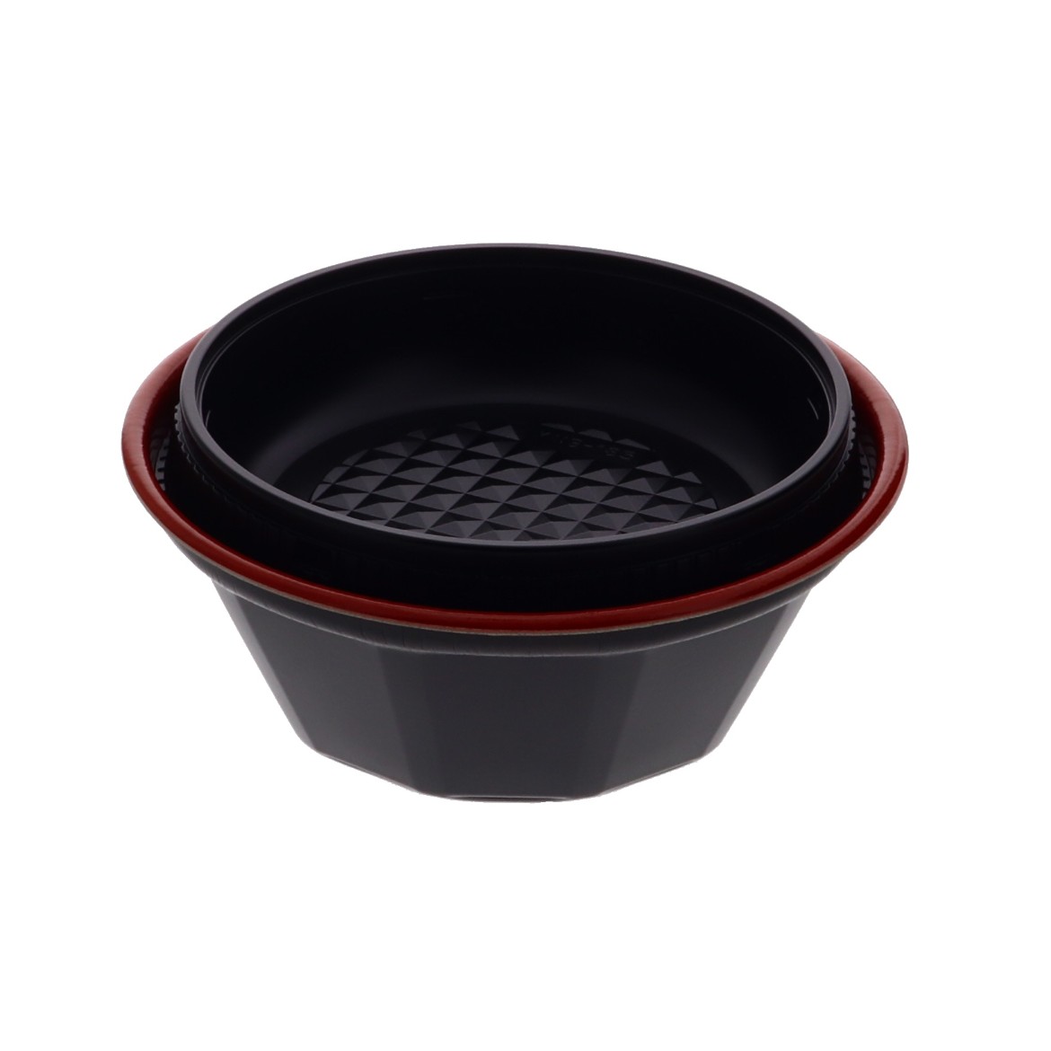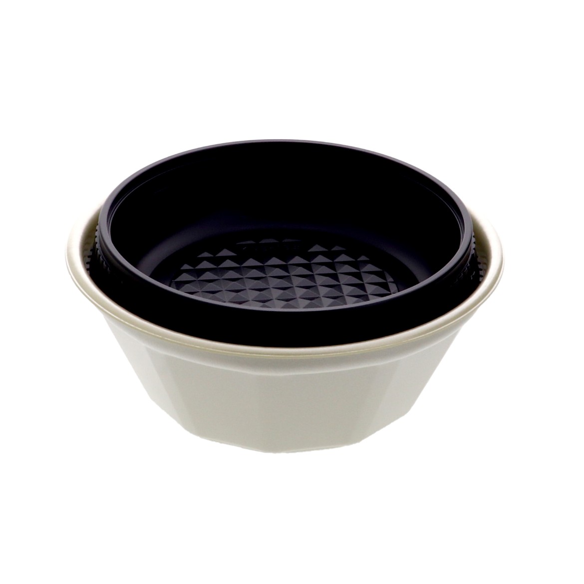 電子レンジ対応の中皿です。3点式内嵌合容器として本体と組み合わせることで、麺とスープ、具材を分けて盛り付けることが可能です。