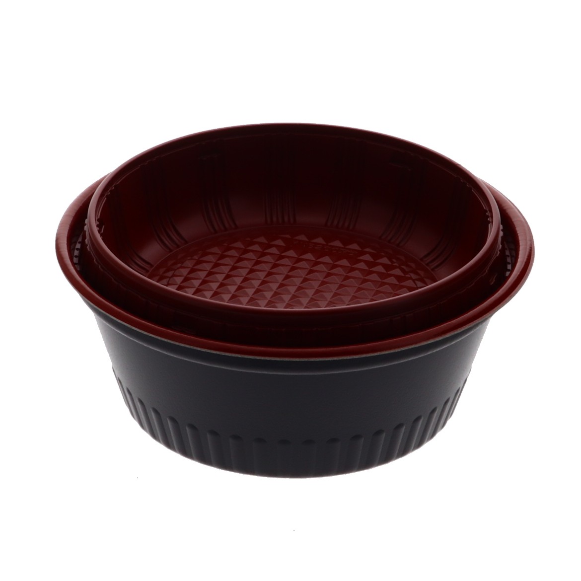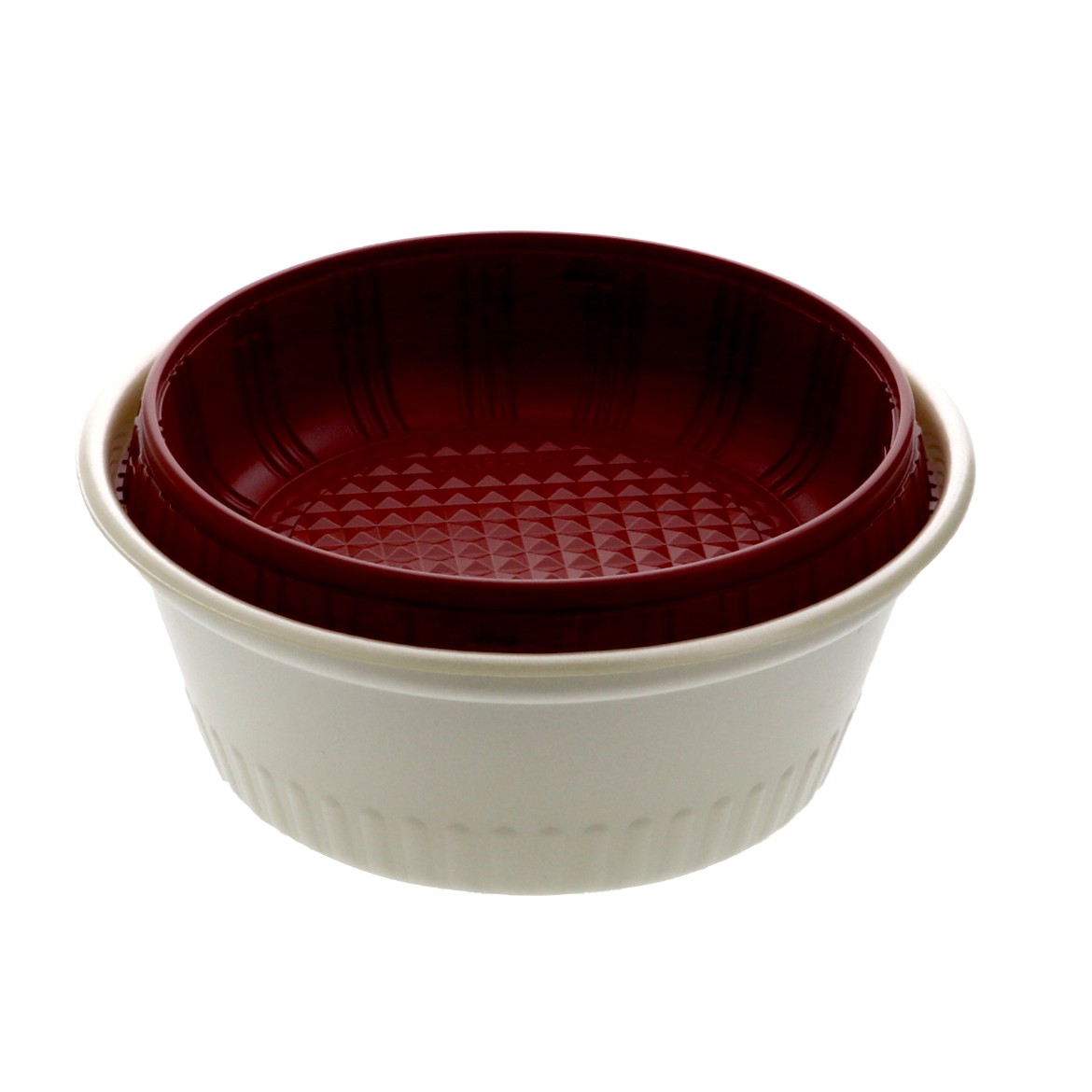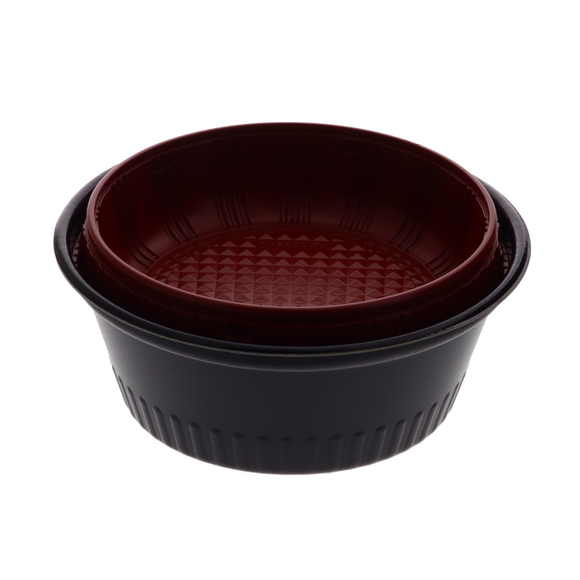 電子レンジ対応の浅型中皿です。3点式二重嵌合容器として本体と組み合わせることで、具材をスープと分けて盛り付けることが可能です。