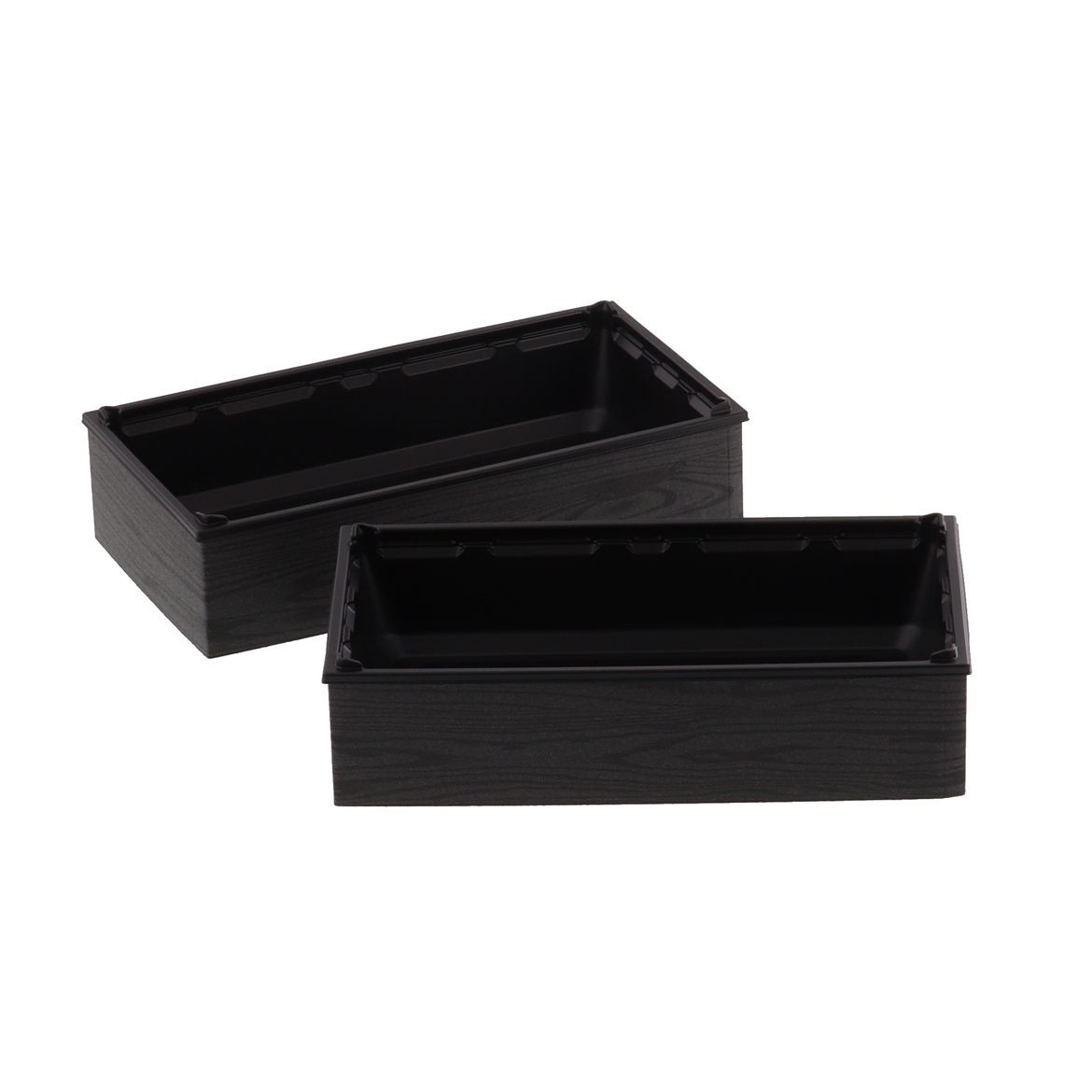トレーは内蔵されており、タレや汁が漏れにくい形状です。高級感のあるシックな外装で、1段・2段と選べます。組み立て式のため在庫場所も抑えられ、おすすめです。