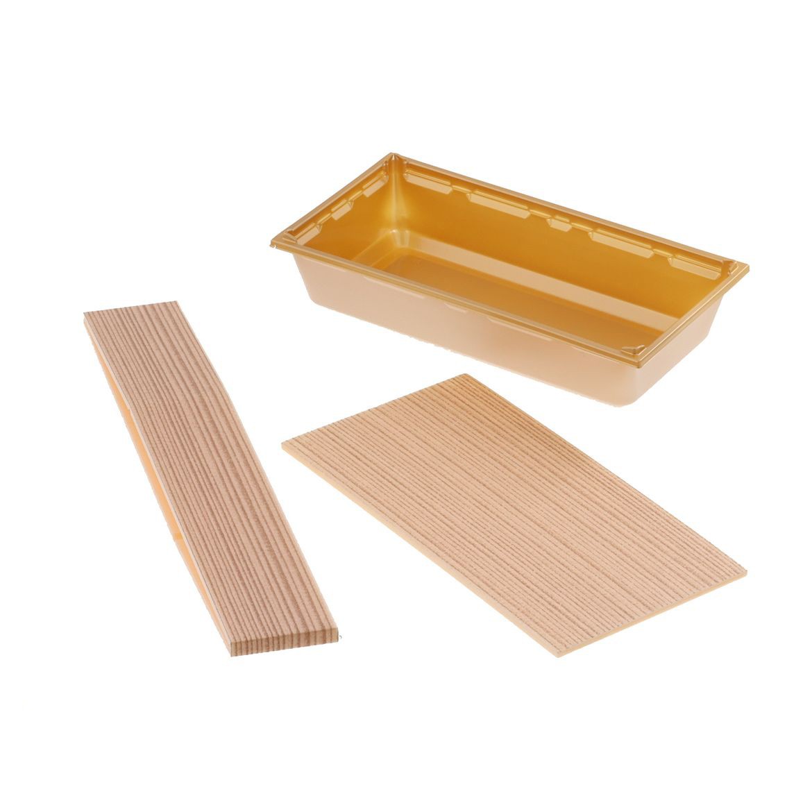 トレーは内蔵されており、タレや汁が漏れにくい形状です。温かみのある木目のデザインで、1段・2段と選べます。組み立て式のため在庫場所も抑えられ、おすすめです。