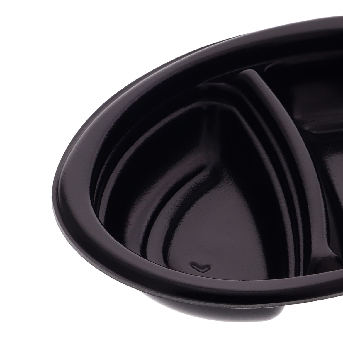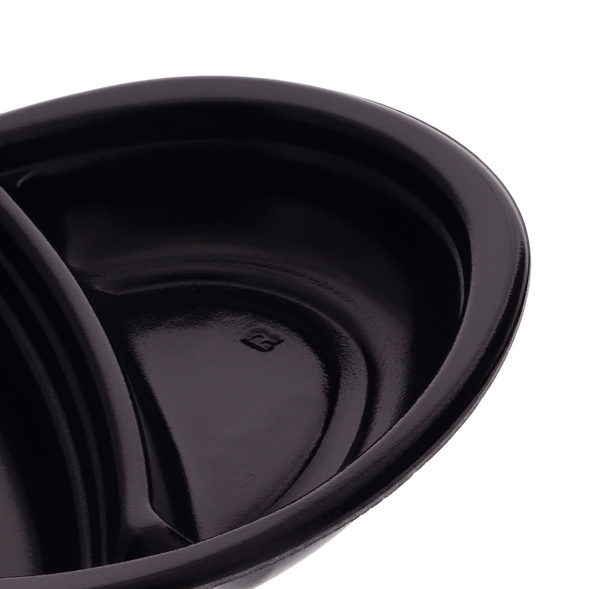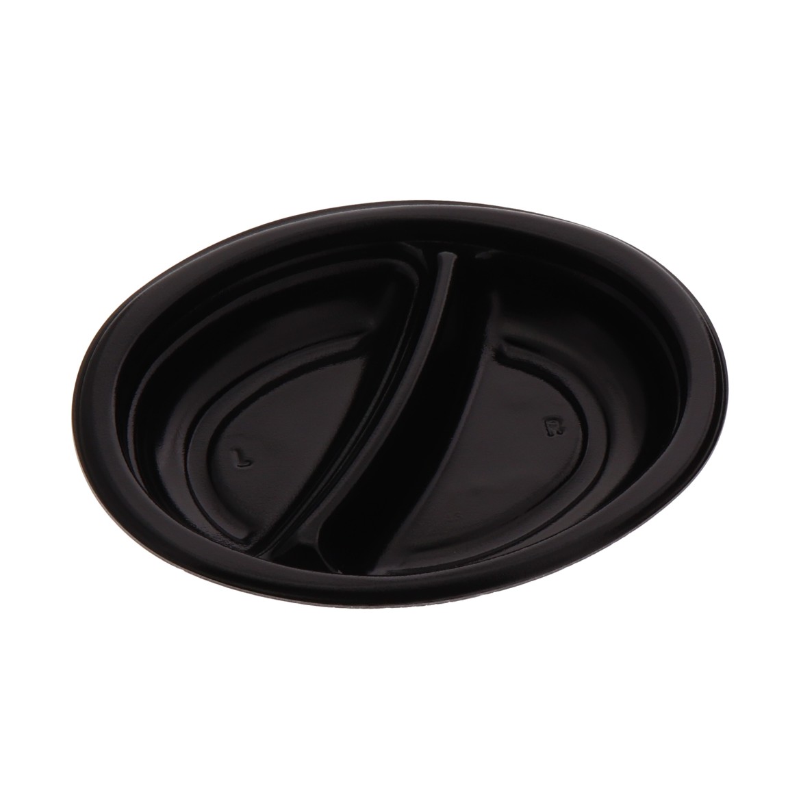 電子レンジ対応の2つ仕切タイプの汁漏れしにくいカレー容器です。