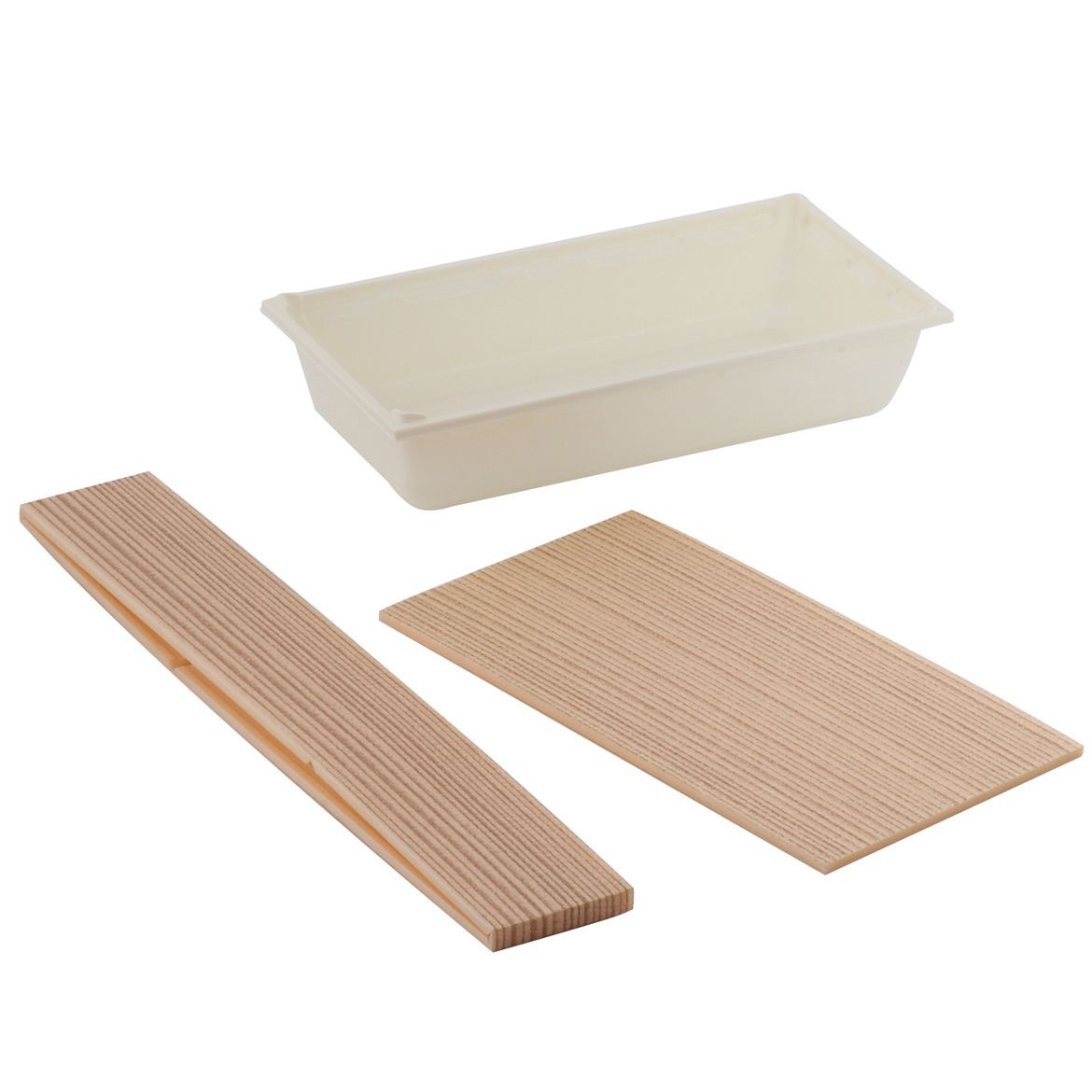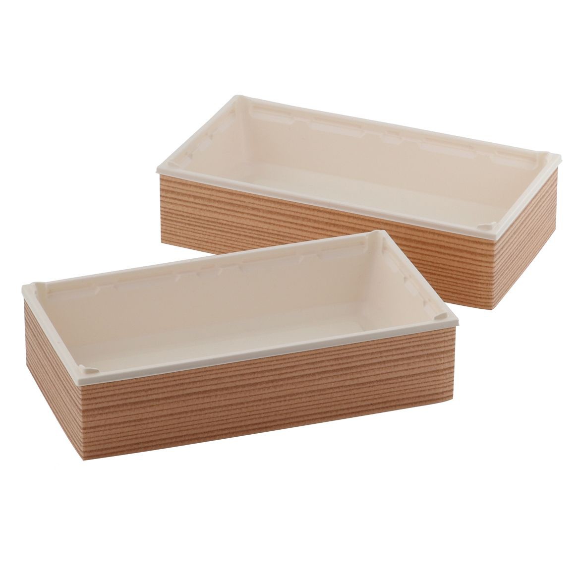 トレーは内蔵されており、タレや汁が漏れにくい形状です。温かみのある木目のデザインで、1段・2段と選べます。組み立て式のため在庫場所も抑えられ、おすすめです。