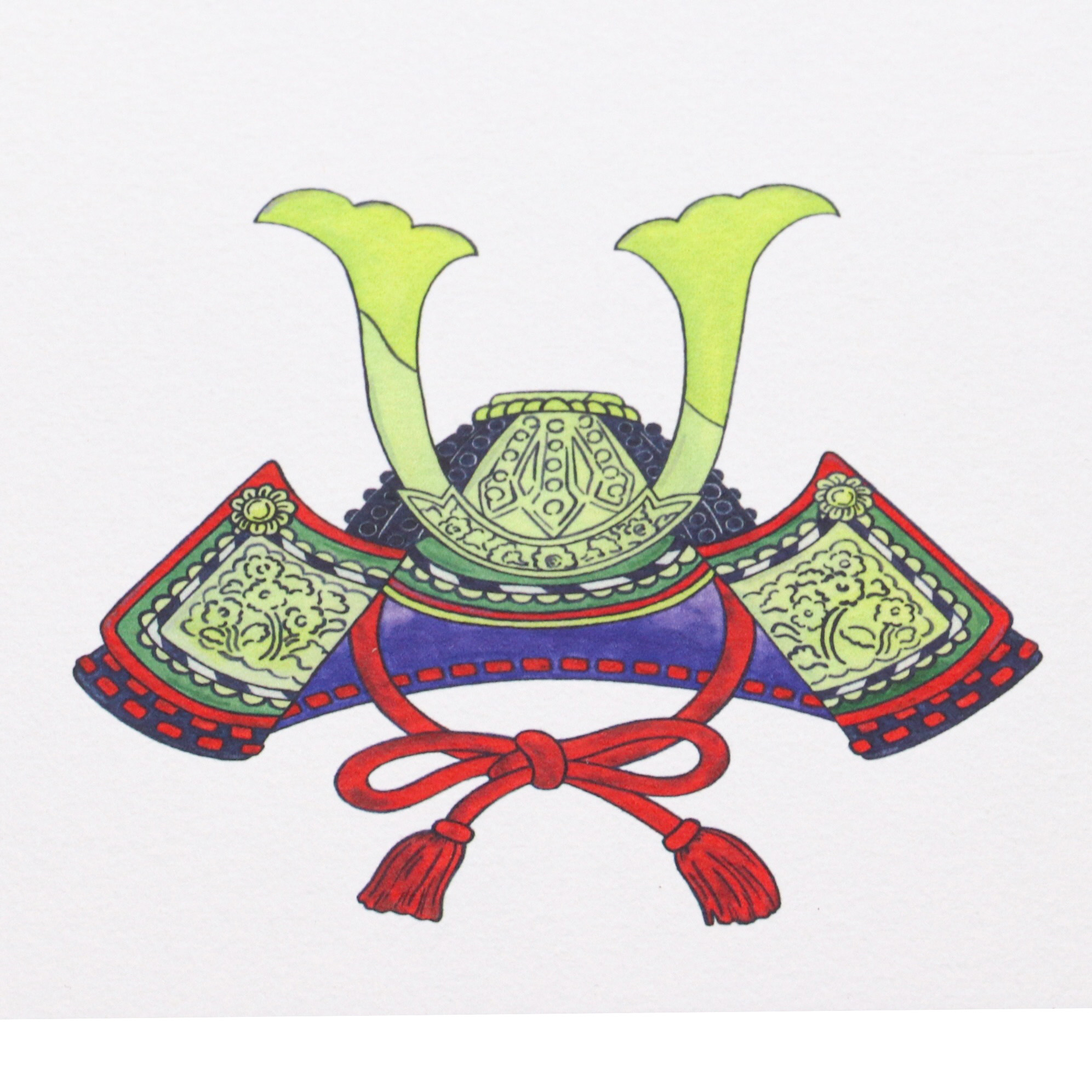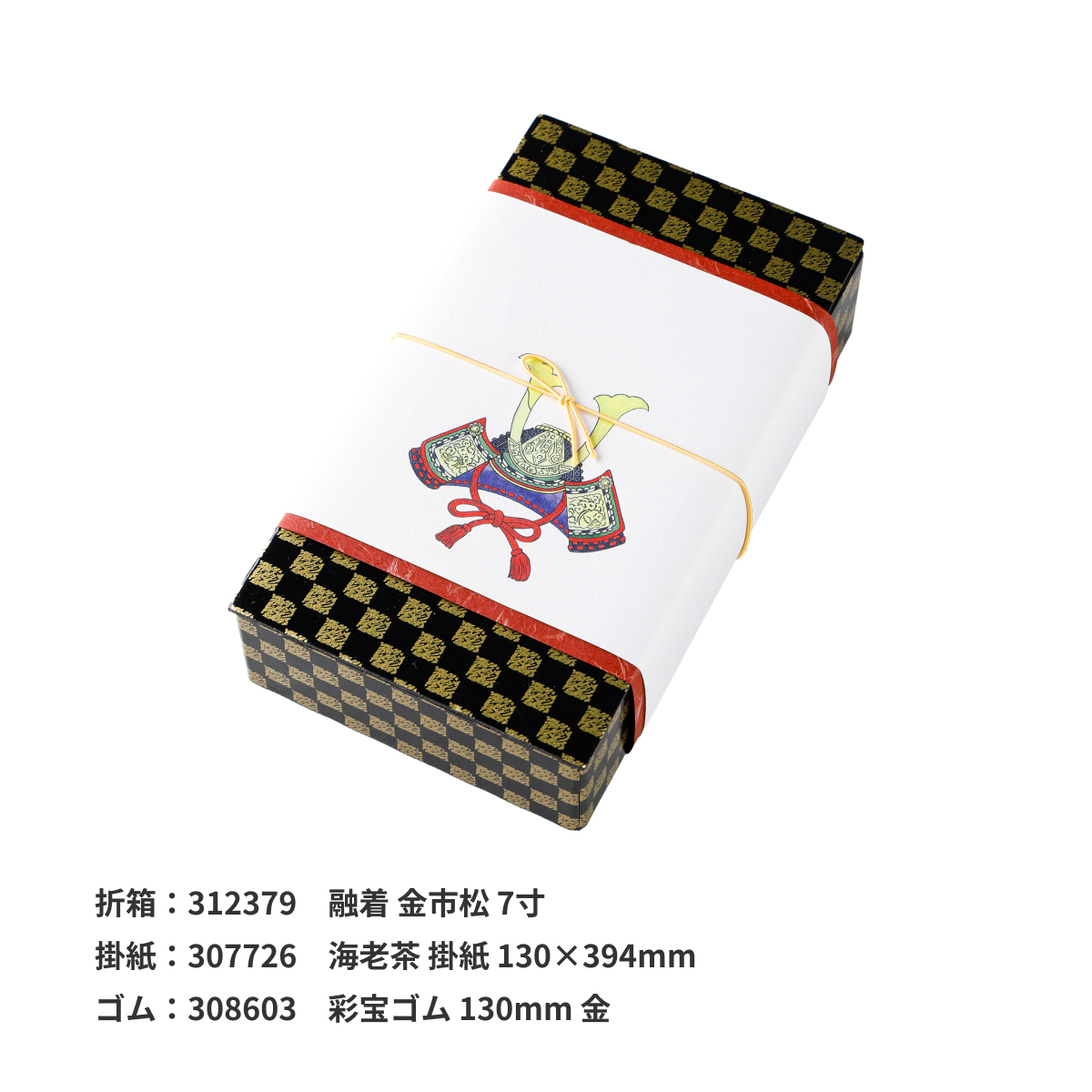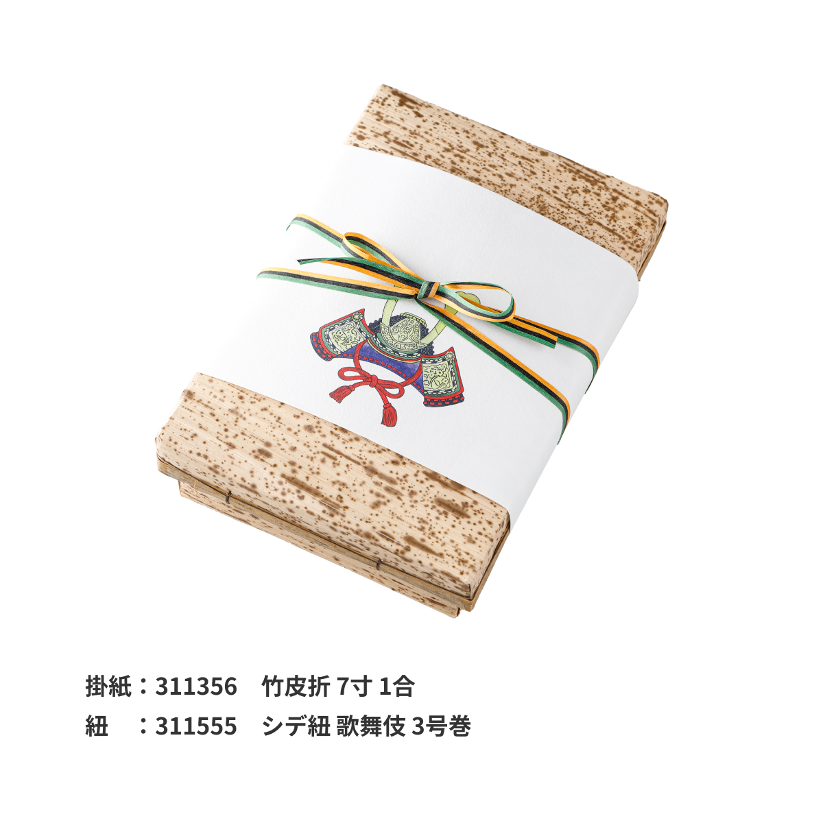 端午の節句を祝う、勇ましさと気品を兼ね備えた兜のデザインの掛紙。