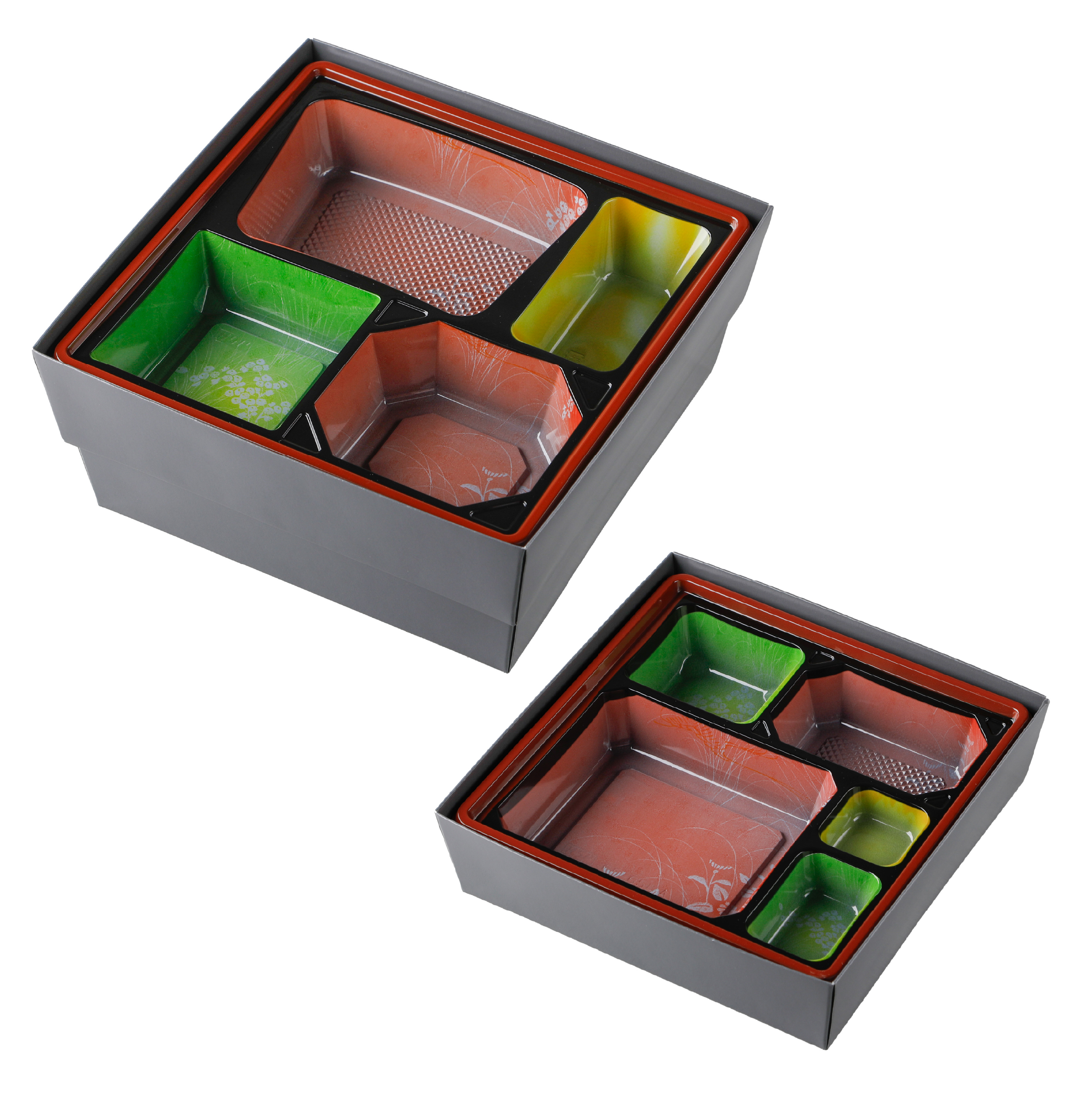 足付で高級感のある紙ボックスタイプの二段弁当です。