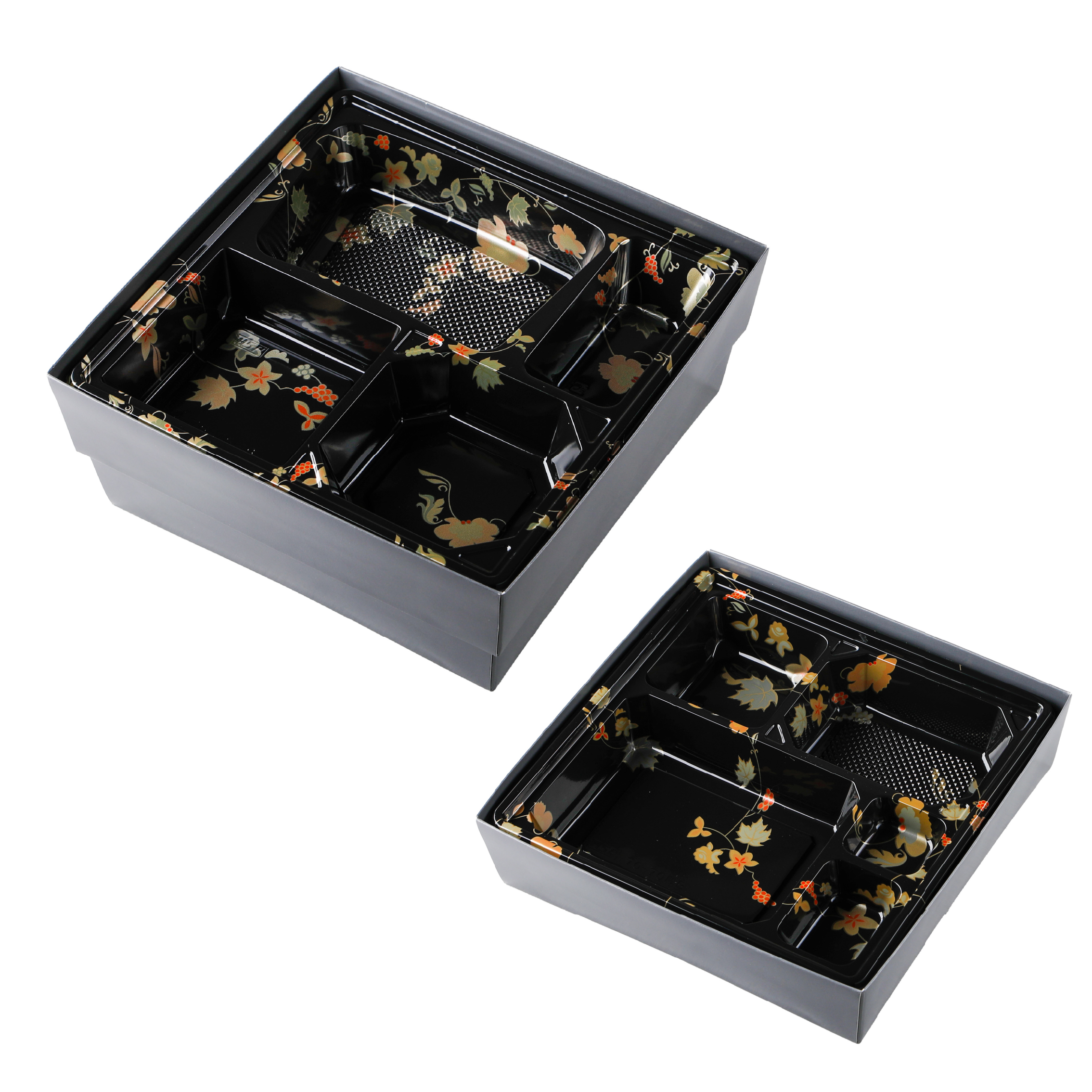 足付で高級感のある紙ボックスタイプの二段弁当です。