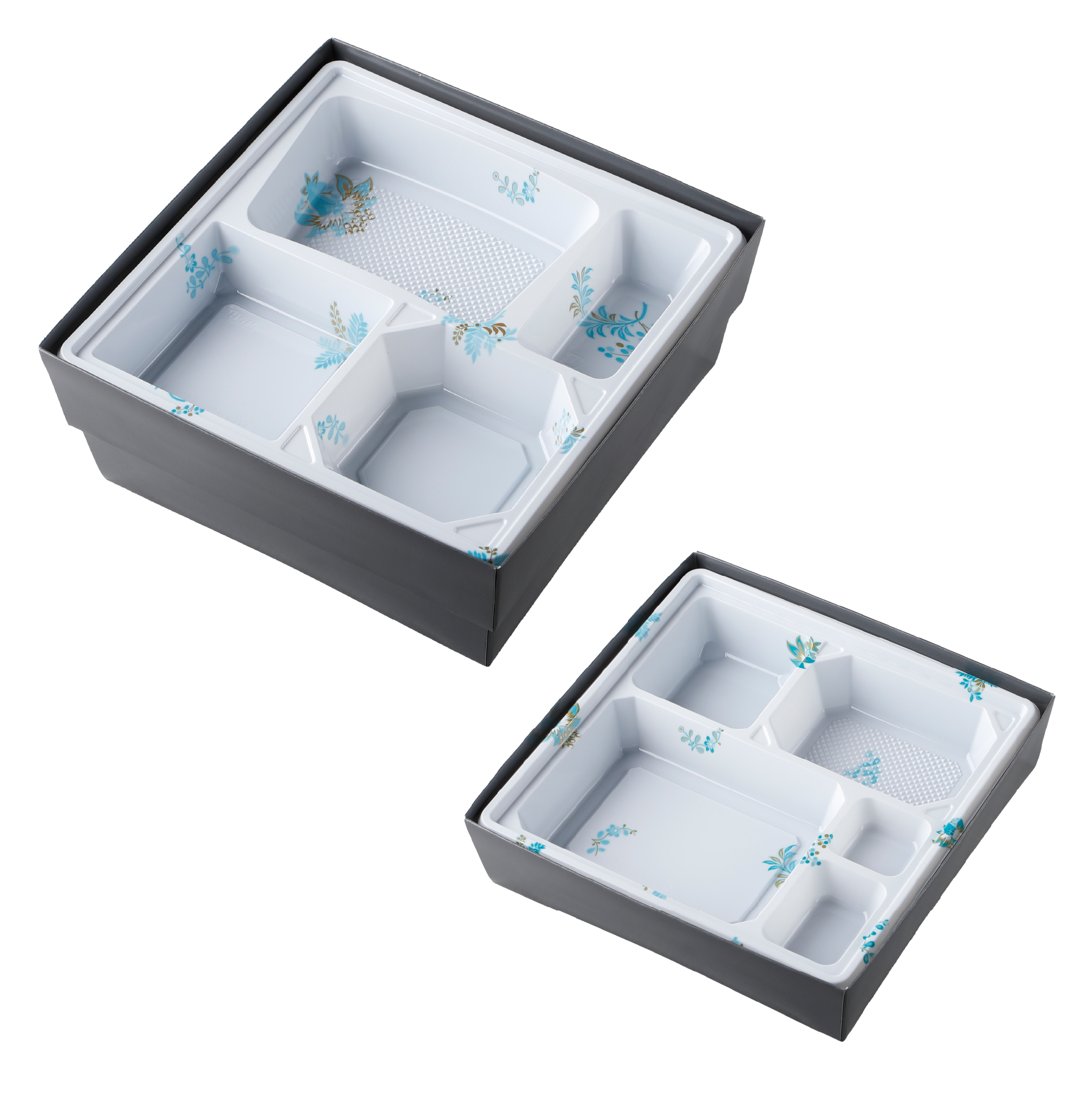 足付で高級感のある紙ボックスタイプの二段弁当です。