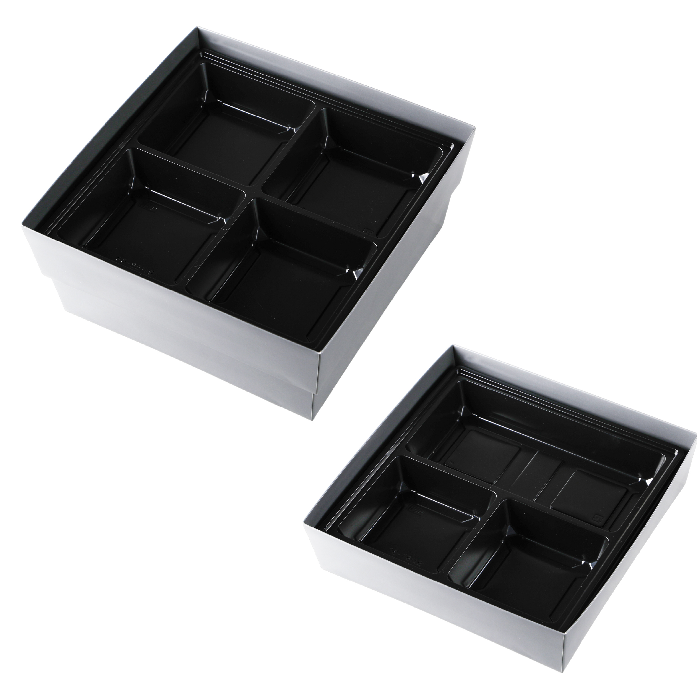 足付で高級感のある紙ボックスタイプの二段弁当です。