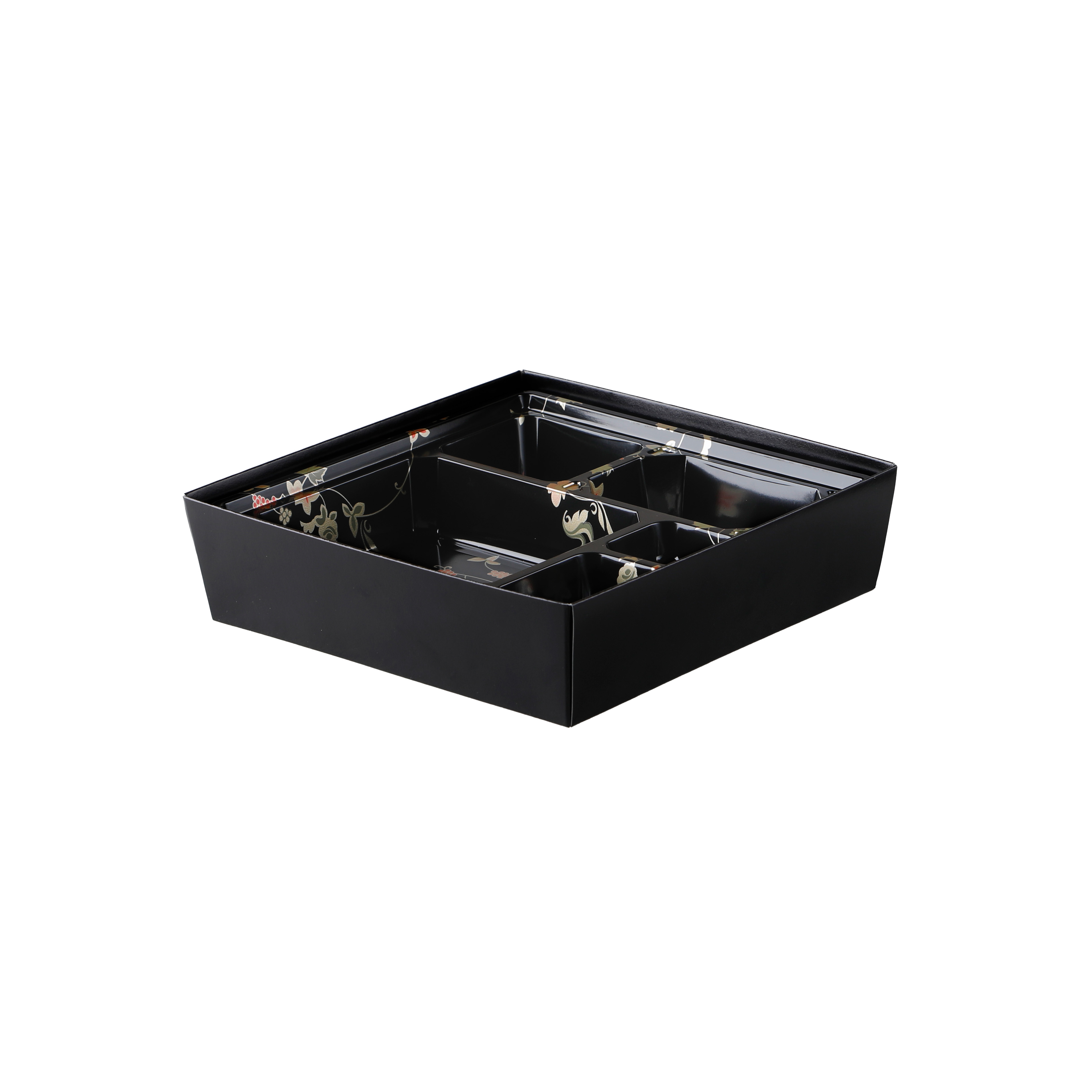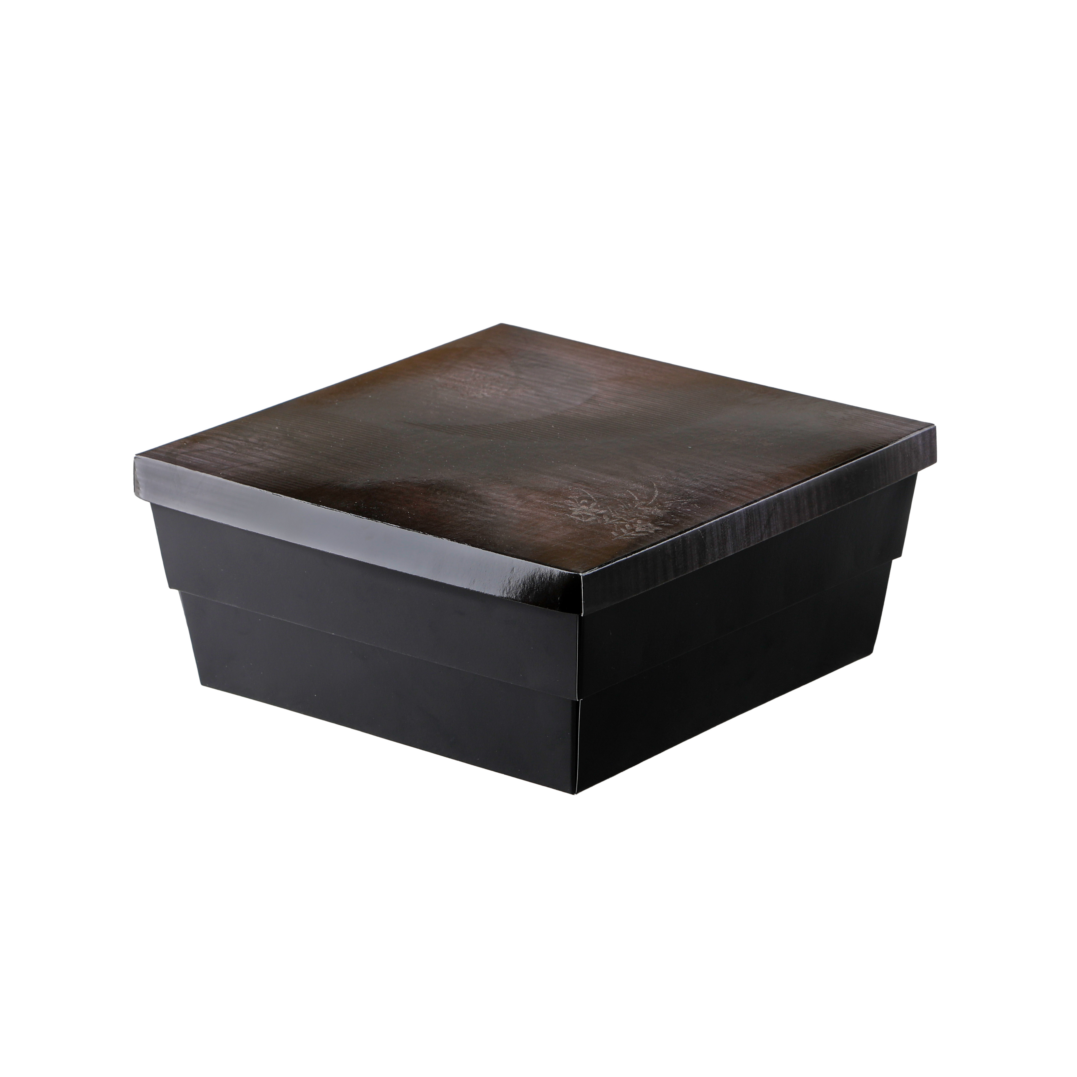 足付で高級感のある紙ボックスタイプの二段弁当です。本体の模様にはエンボス調の凹凸が特徴です。