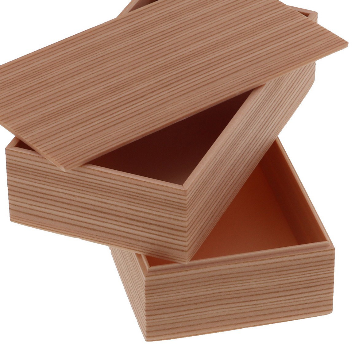 紙手提げにも入れやすい、二段の定番サイズ。底板は紙ではなくハッポウ素材です。小鉢70が計4個入りますので、汁物や汁もれしやすいおかずを入れる際には併せてご利用ください。