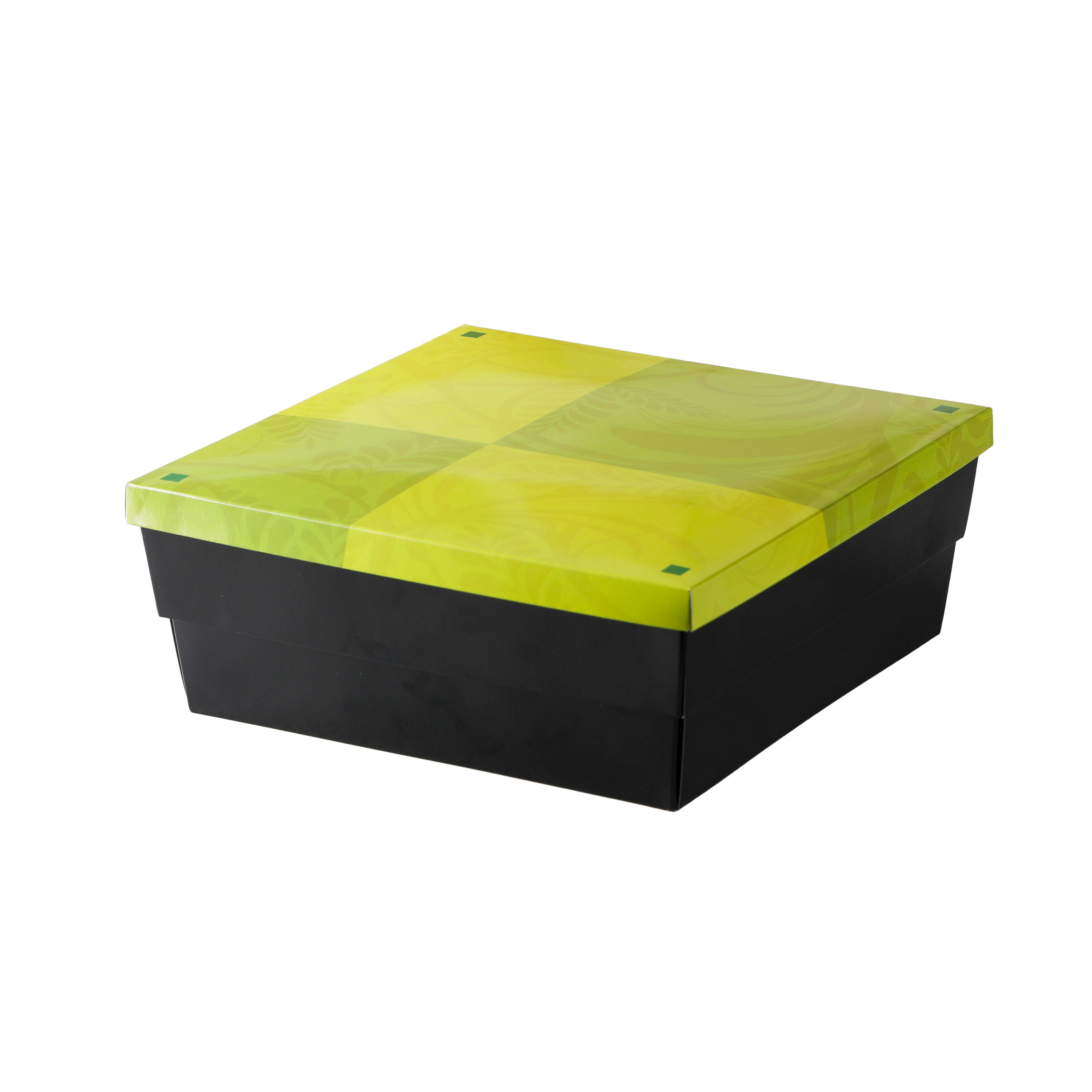 足付で高級感のある紙ボックスタイプの二段弁当です。本体の模様にはエンボス調の凹凸が特徴です。