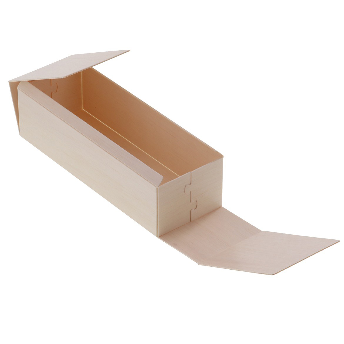 組み立て式の木の折箱です。在庫場所を取らないため省スペースにもなります。太巻き用の折としてもおすすめです。優しい色合いのファルカタは和洋折衷様々な料理に合います。
