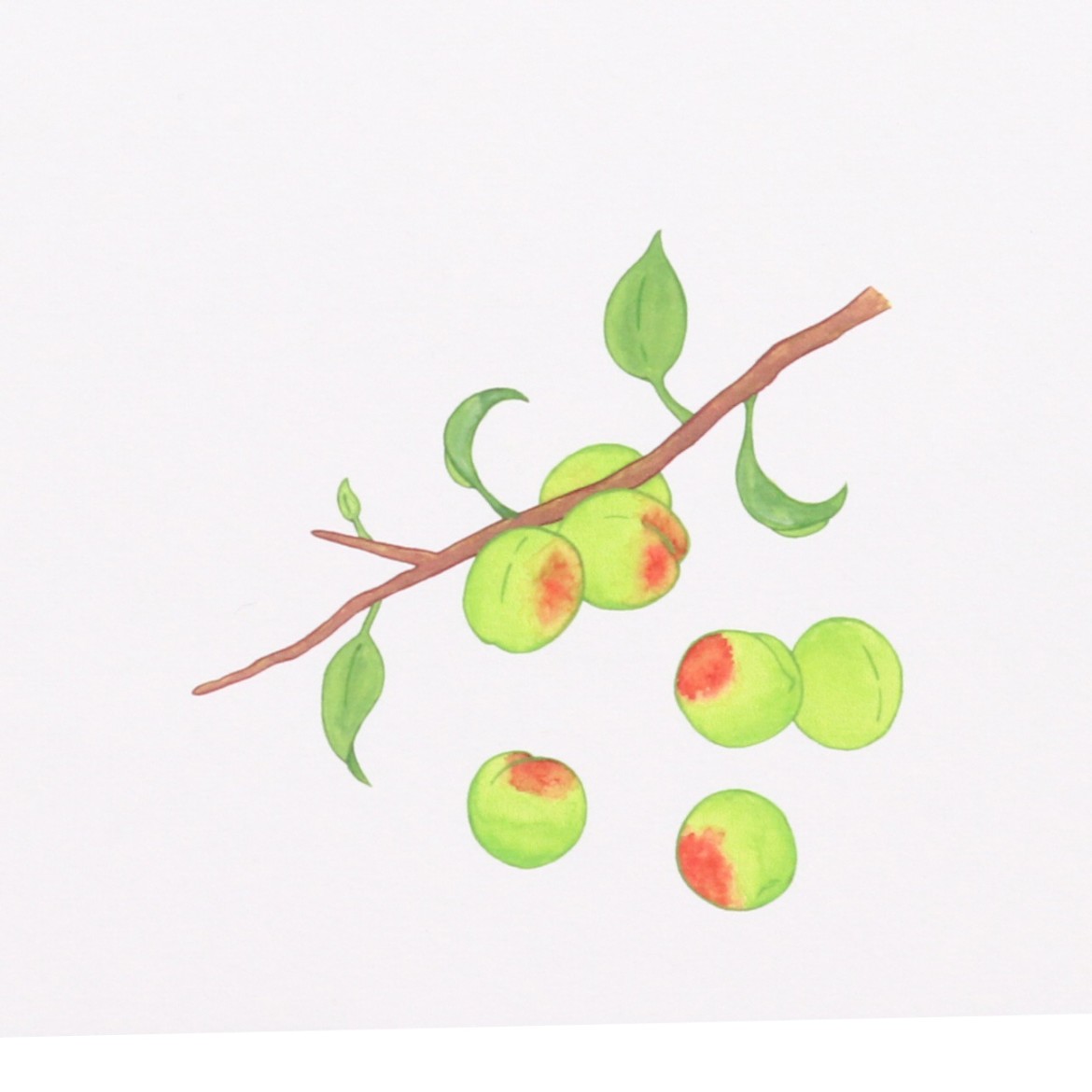 まるく、硬く、でもどこかやわらかさを帯びているようなほんのりと色づいた青梅が、季節のうつろいを感じる掛紙。