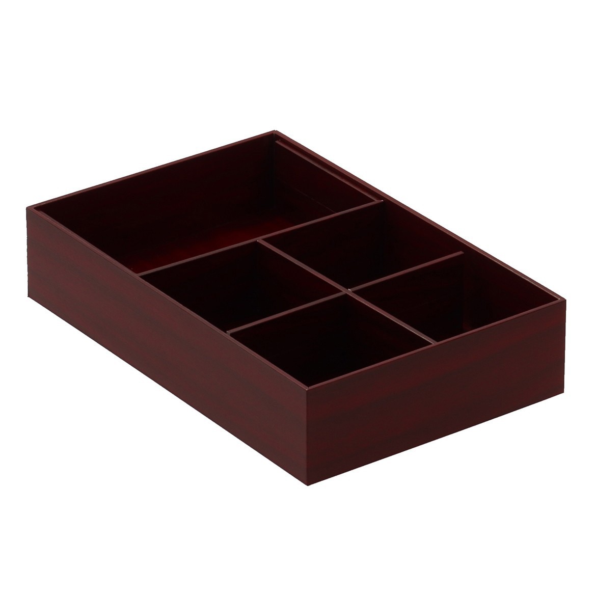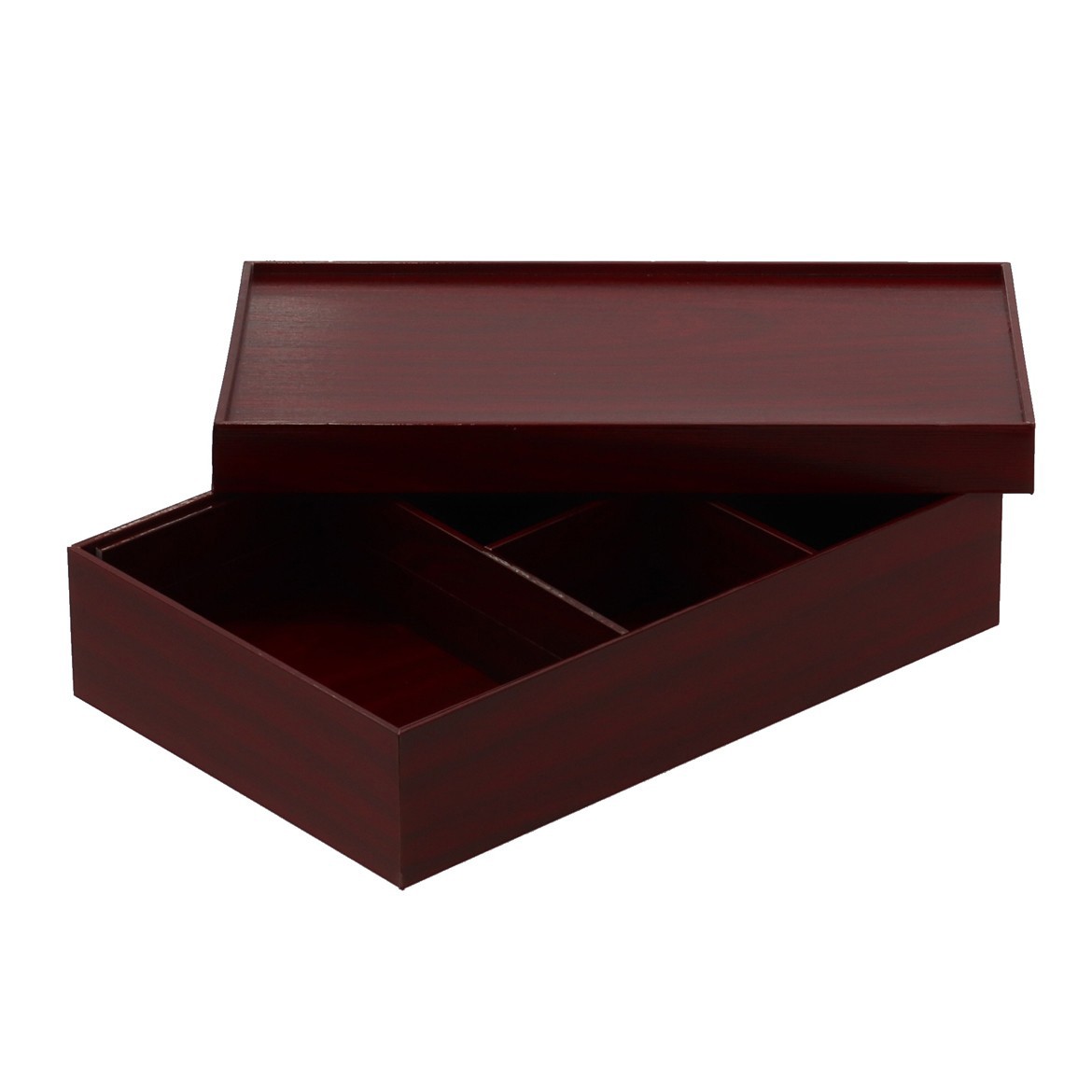 五分する仕切りが内蔵されている、お弁当にオススメの折箱。細かい仕切が四マスあり、折箱のサイズも大きすぎないため、