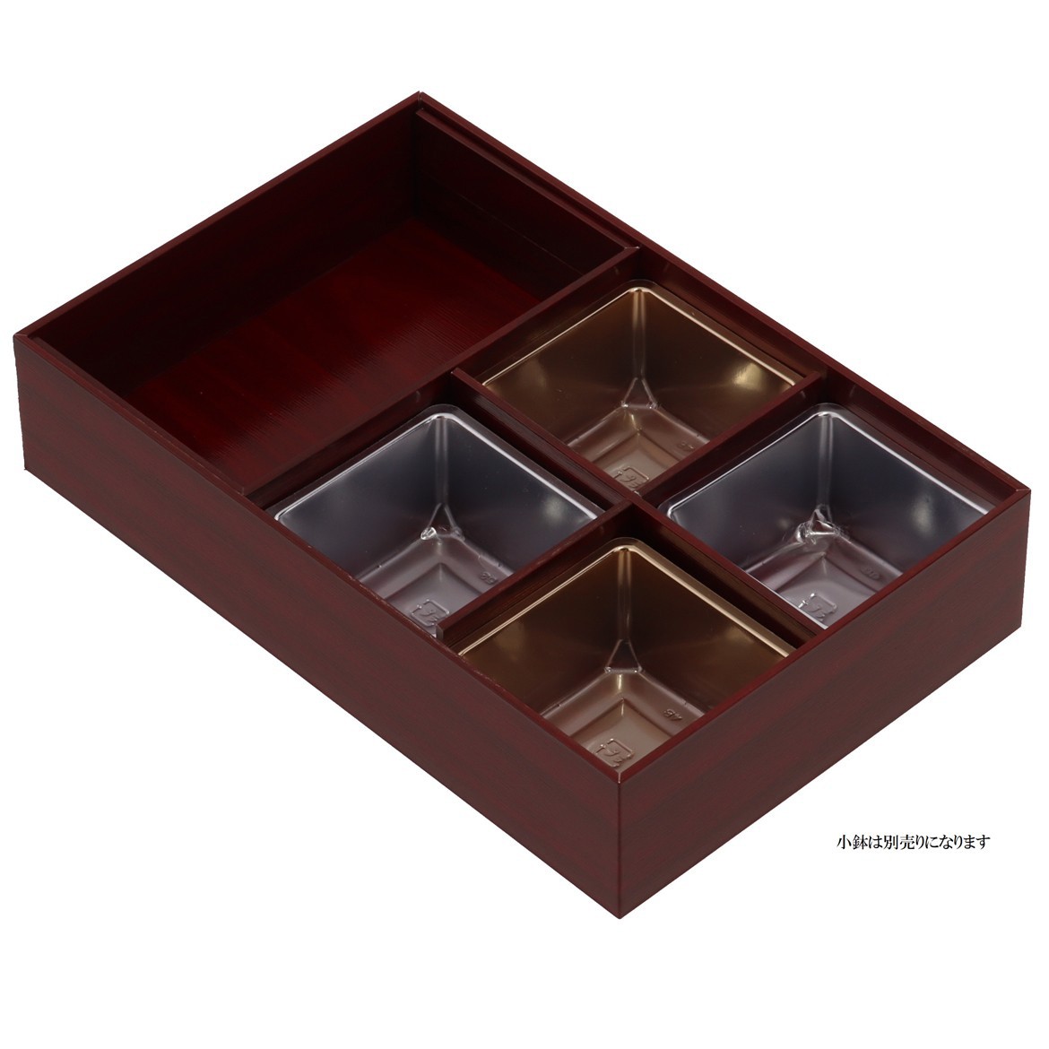 女性向けのお弁当やお茶会用に大変人気です。赤漆は品もあり、更に50サイズの小鉢を合せることで盛り付けやすく、料理も一層華やかになります。
