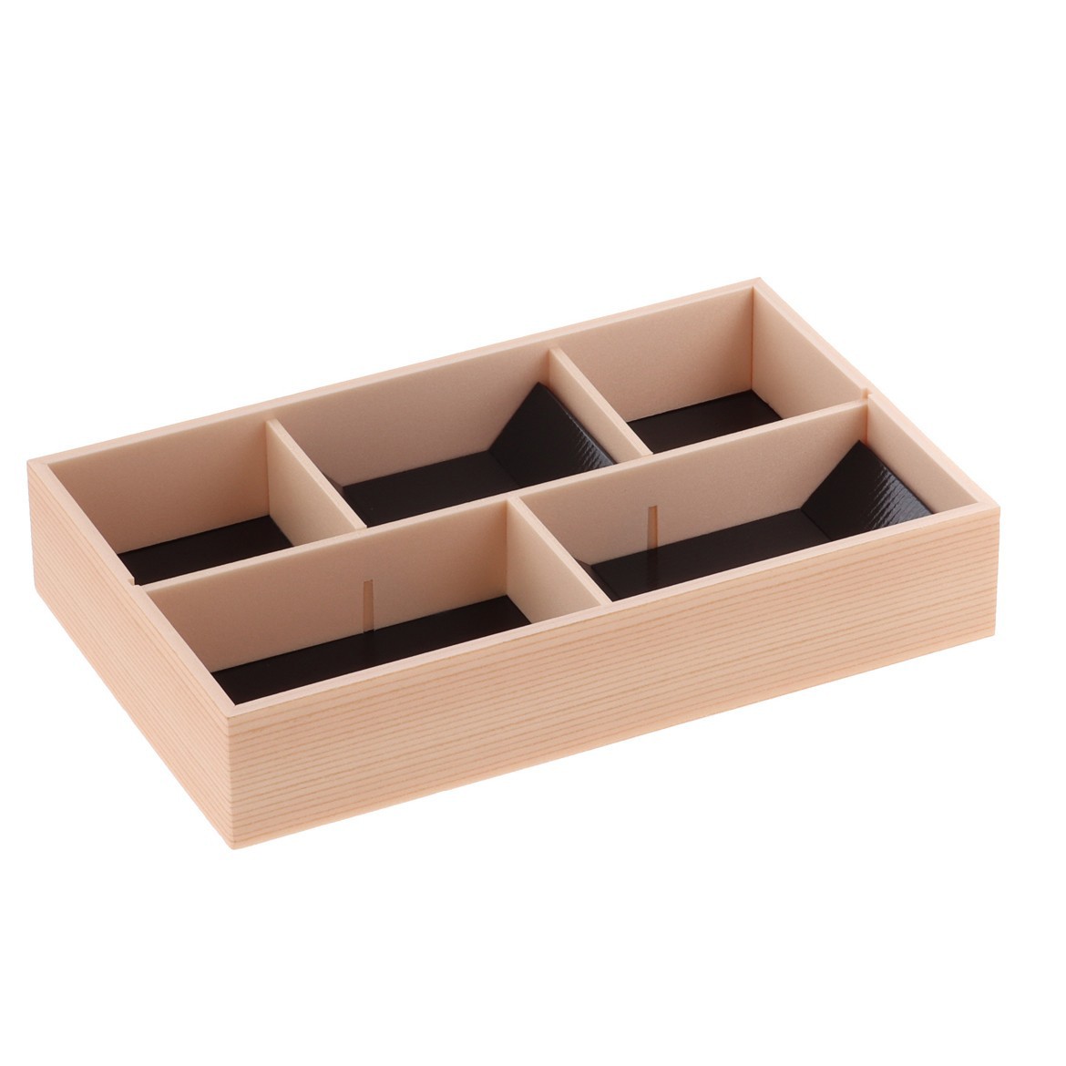 五分する仕切りが付いており、懐石弁当におすすめな大きめの折箱です。