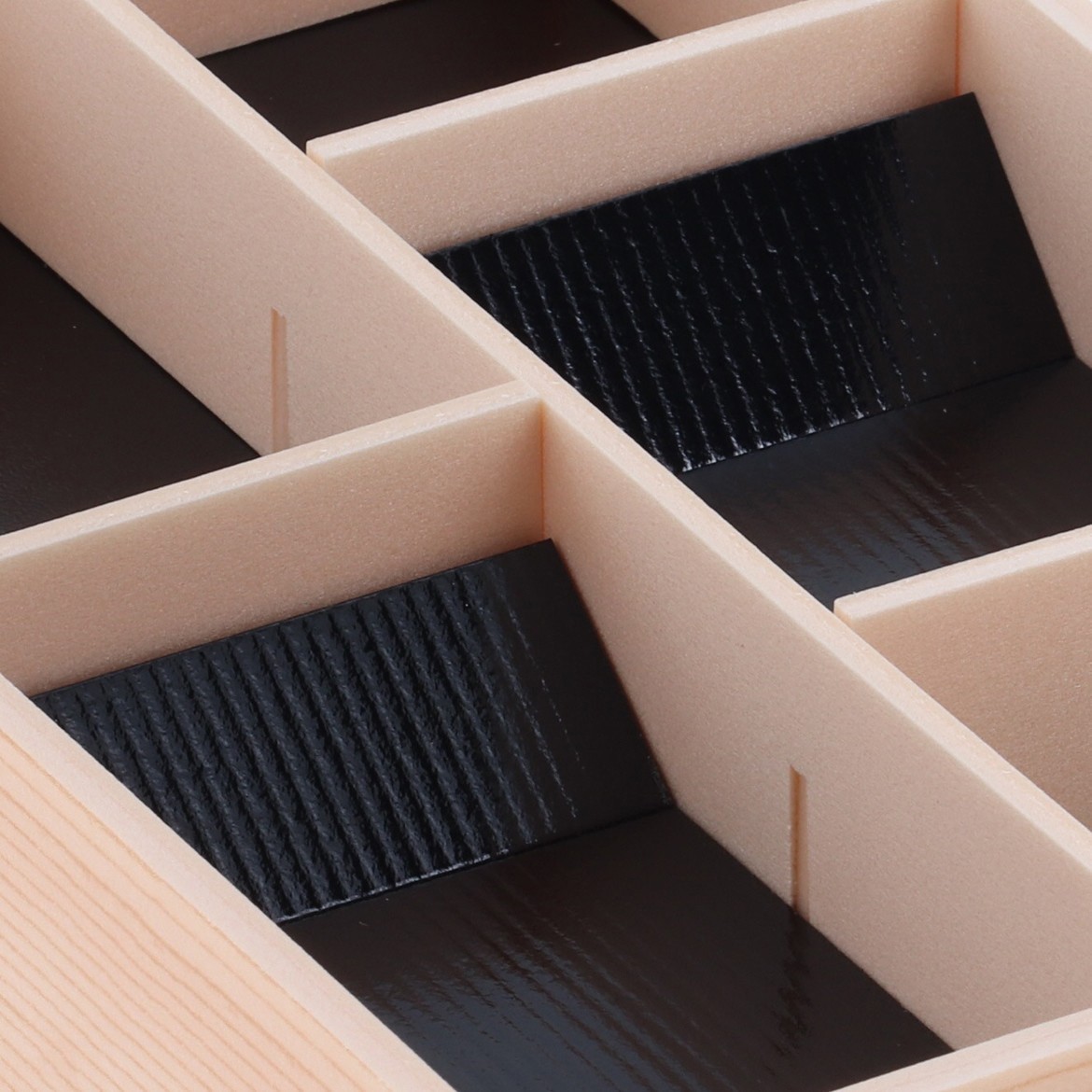 蓋・身・仕切り:プラスチック(PSP)の木目の板を使用