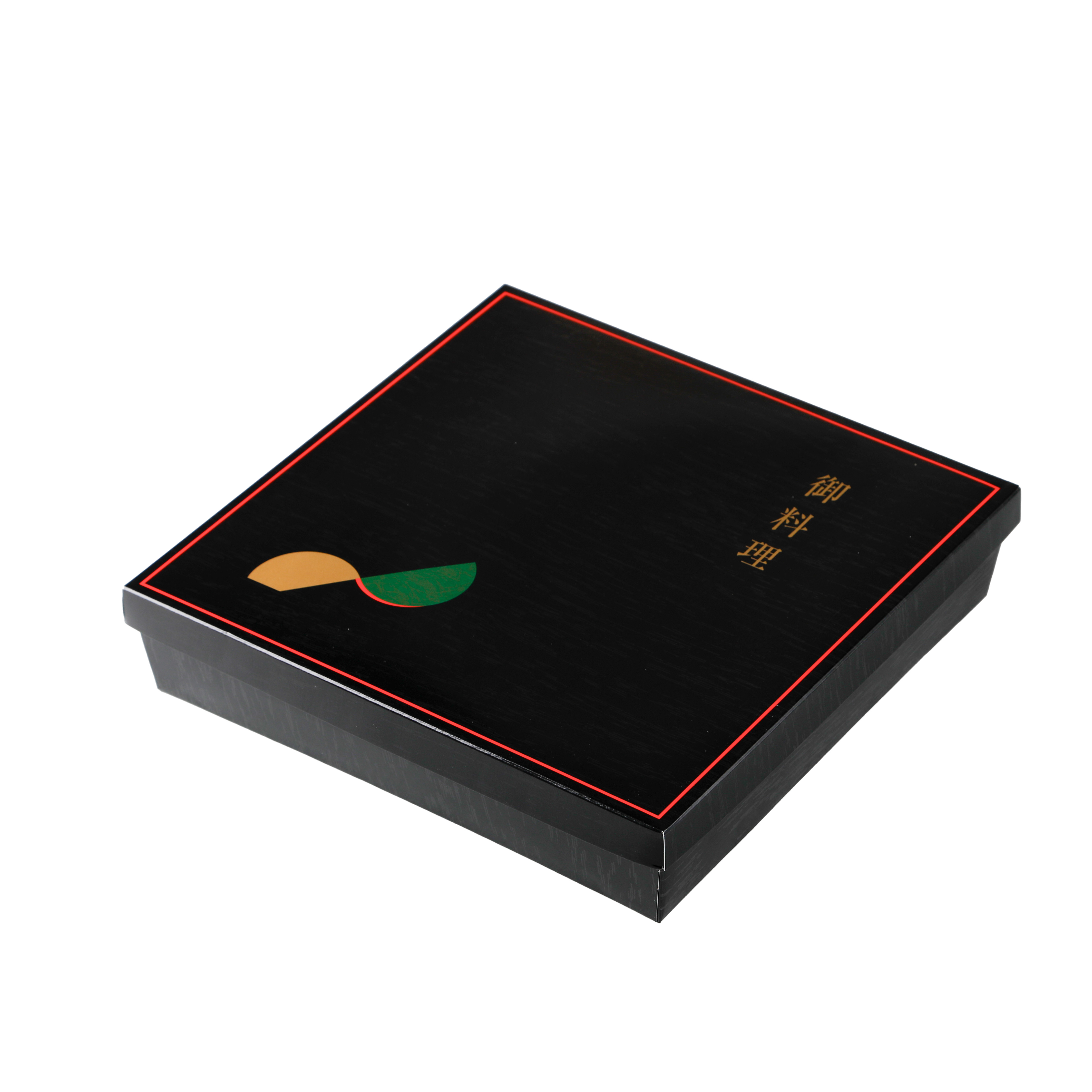 足付で高級感のある紙ボックスタイプの一段弁当です。