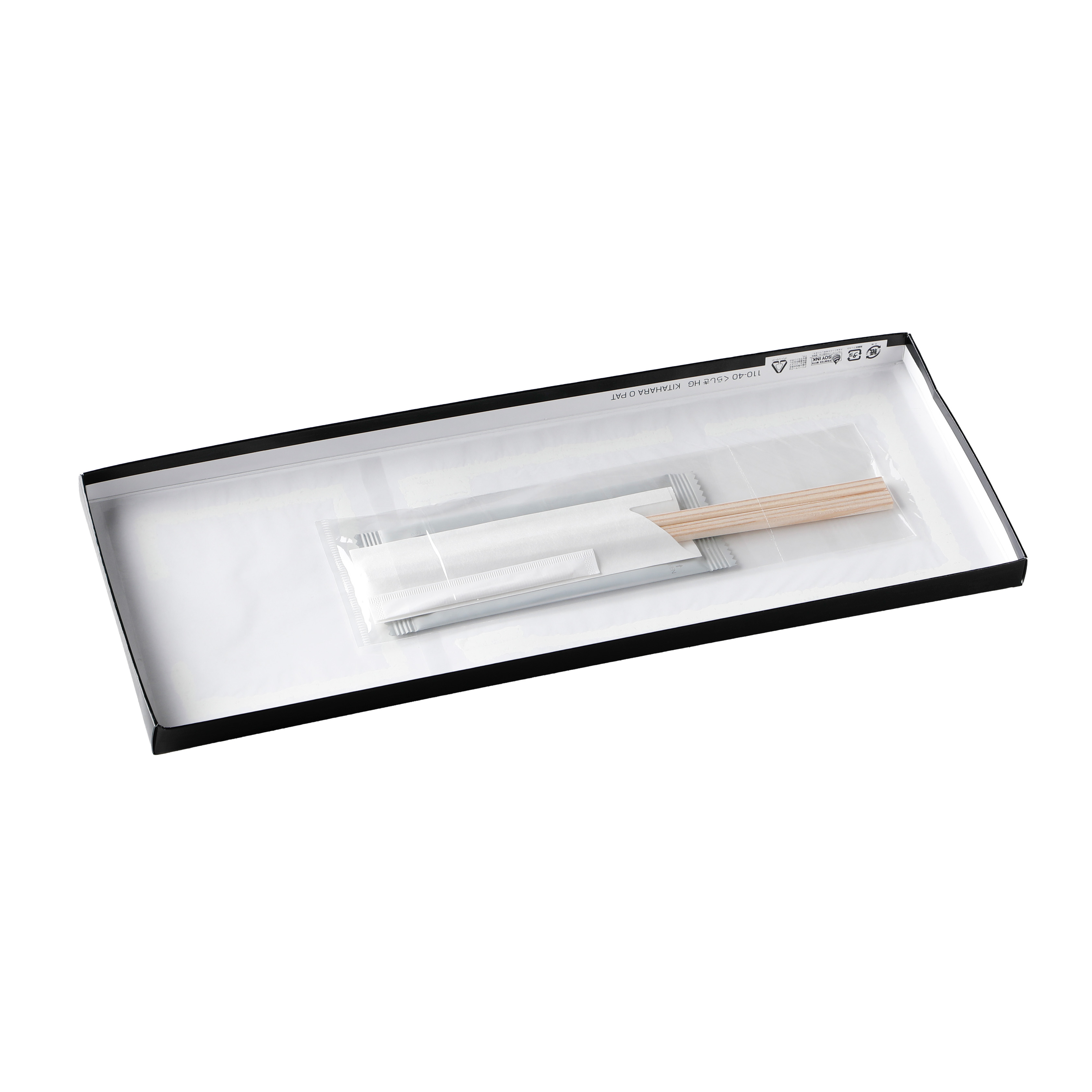 蓋の裏面にはフィルムが貼っており、そちらに箸やおしぼりを収納することができます。