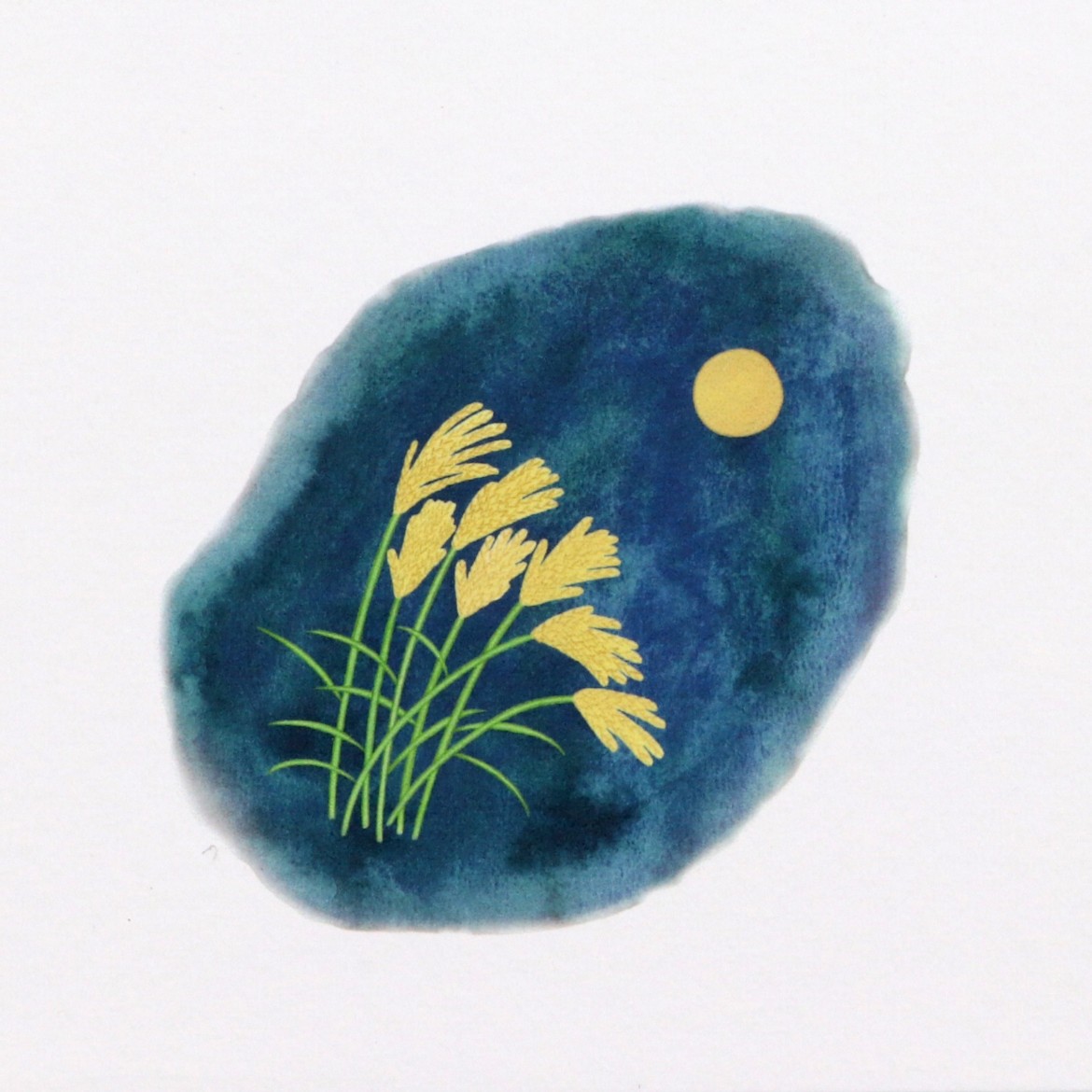 月明かりに照らされて浮かび上がるススキがそよぎ、ひんやりとした空気とともに季節の移ろいを感じさせます。