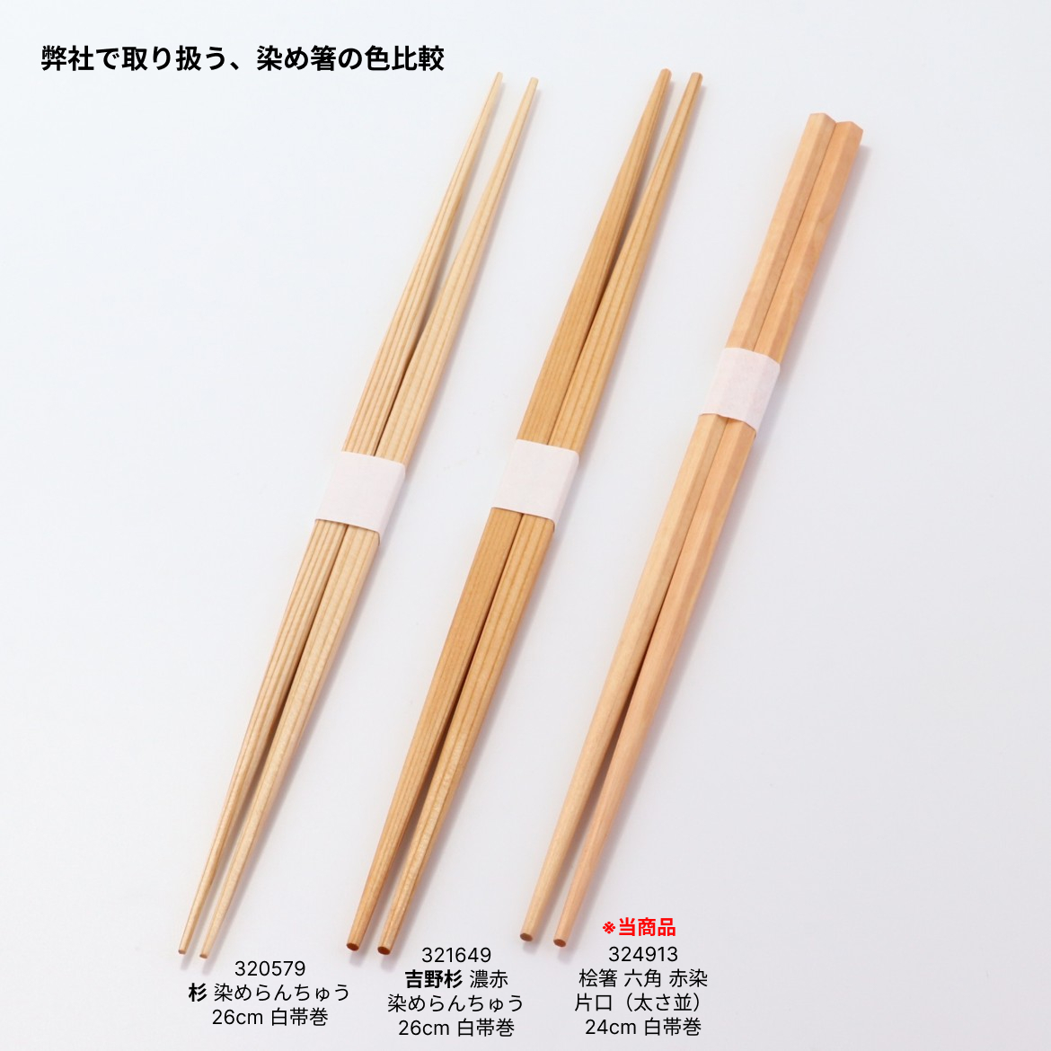 桧箸 六角 赤染 片口(太さ並)24cm 白帯巻