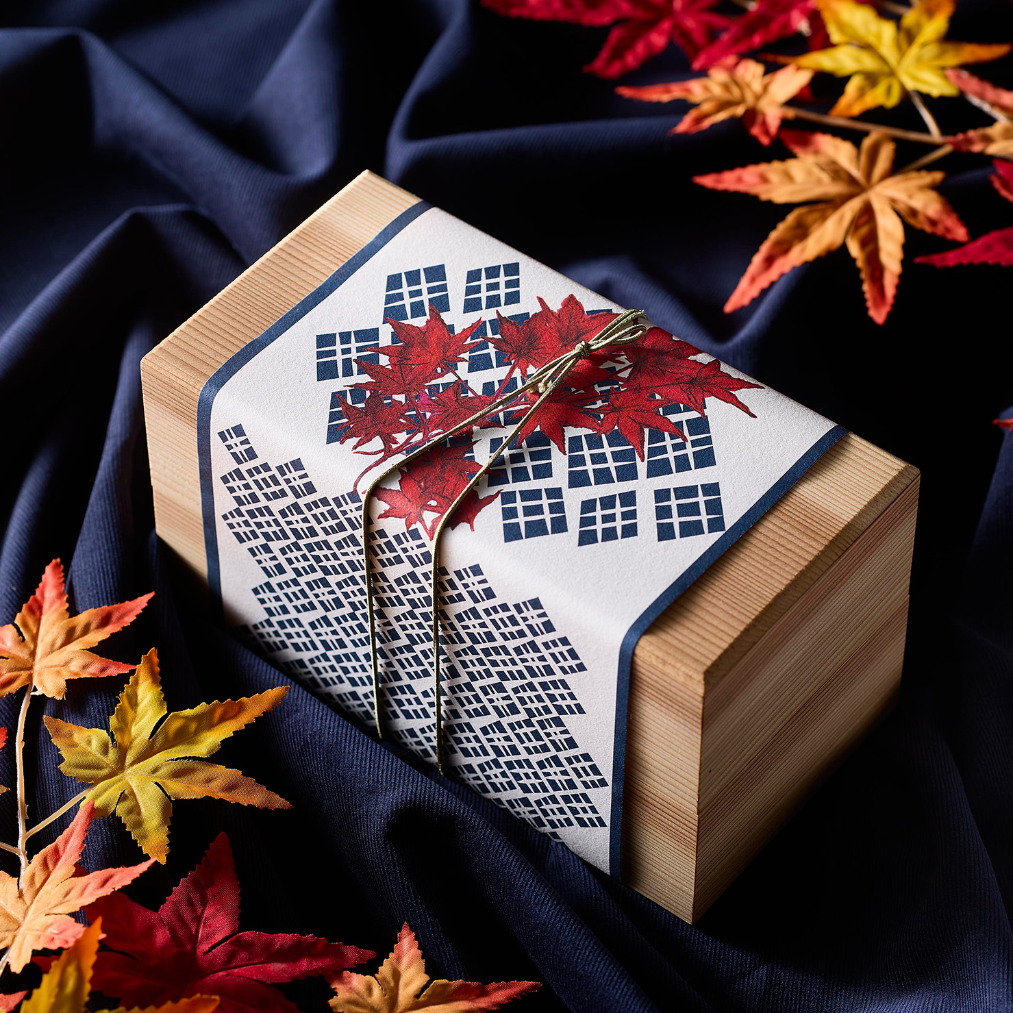 鮮やかな紅葉と、繊細な和文様が織りなす和モダンな掛紙。