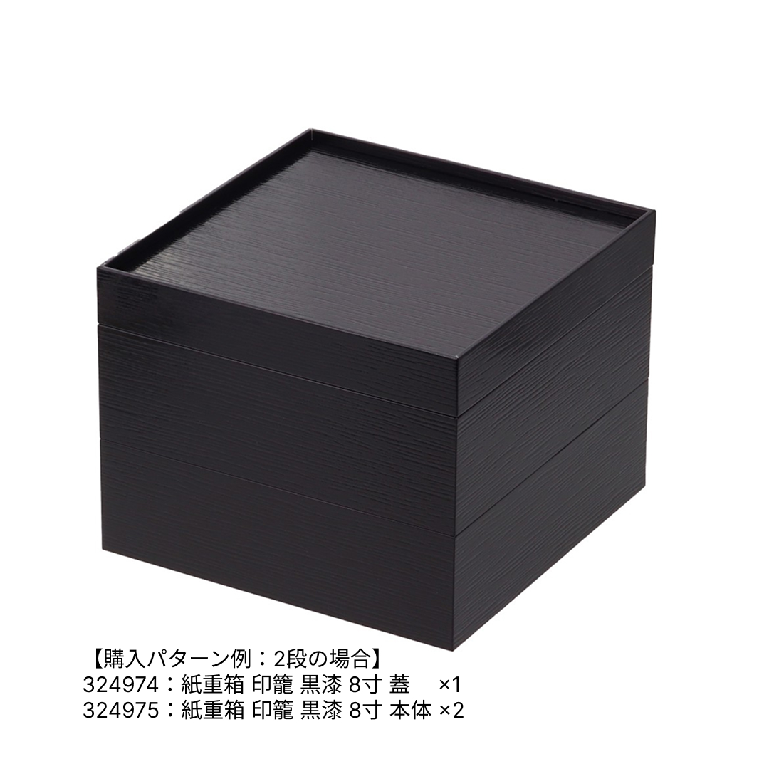 【年内納品終了】紙重箱 印籠 黒漆 8寸 蓋 ※本体別売