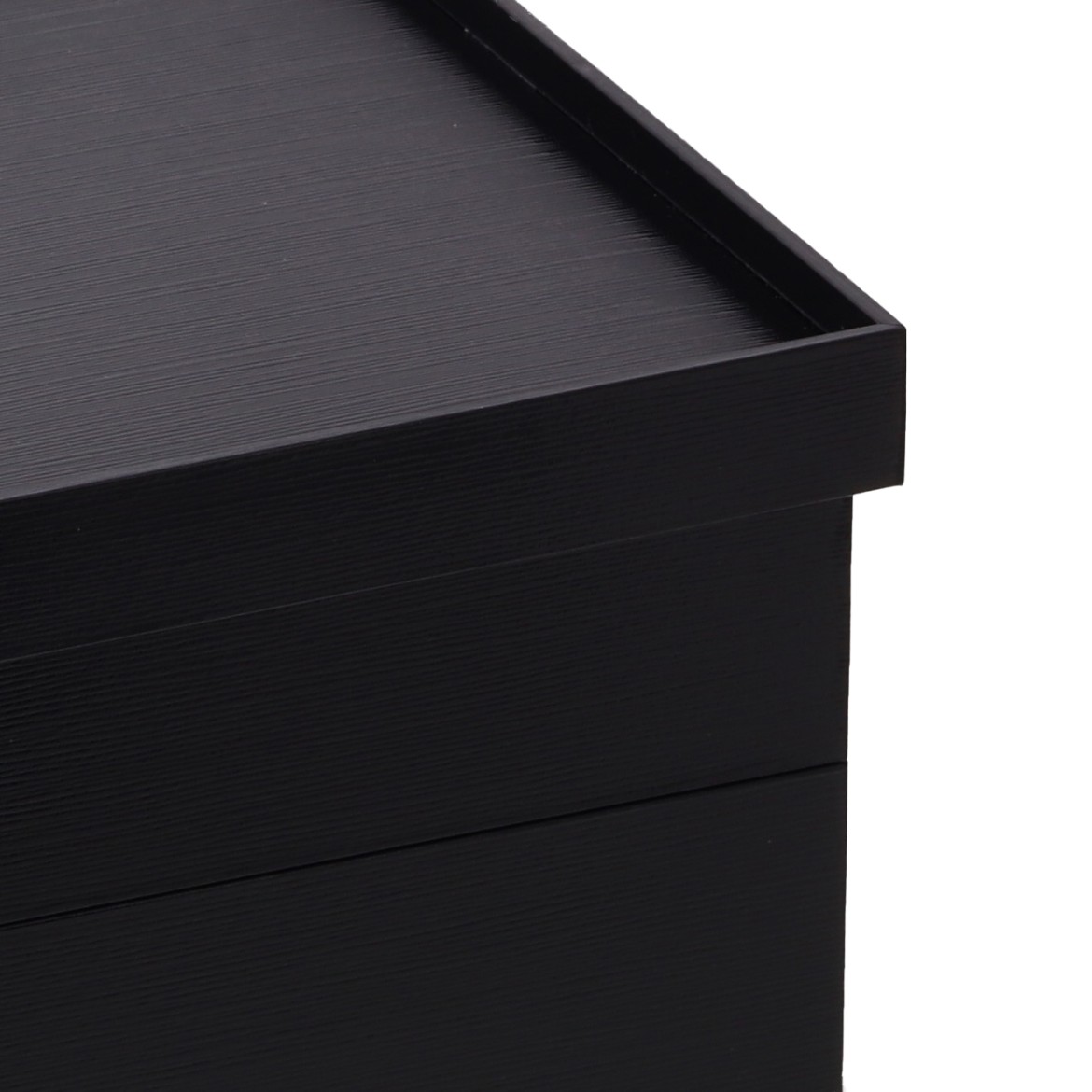 漆塗のような艶と上品な質感をもつ「かぶせ蓋タイプ」の紙重箱です。