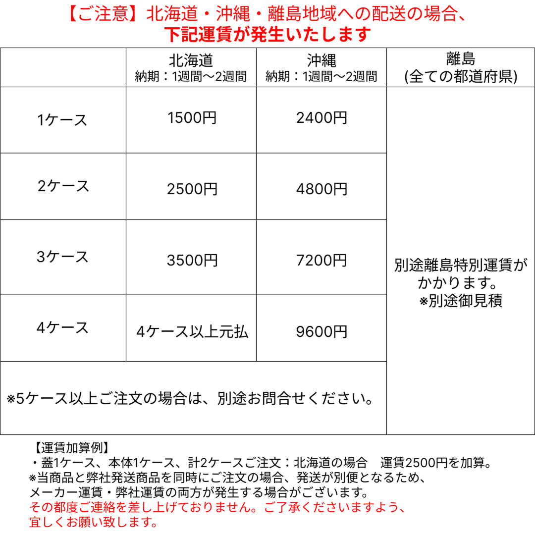 1ケースあたり2,400円(2ケース以上はケース数分の倍数加算)